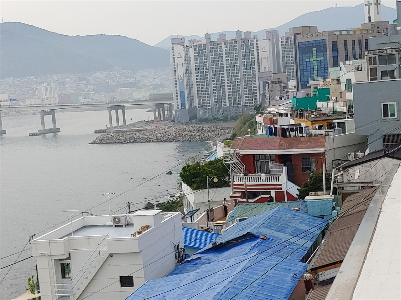 ▲ 흰여울문화마을 옥상들은 전보다 더 예쁘게 칠해져 있었지만, 옥상에서 소일거리를 하는 주민들을 보기 어려웠다. 카페에 올라가서 둘러보면 집 안까지 훤히 보이는 곳이 많다.