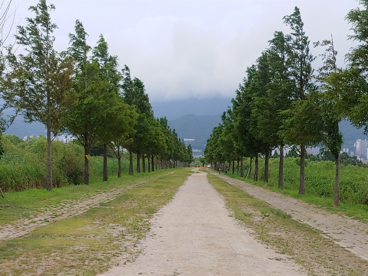 ▲ 메타세콰이어 길 다음날 아침은 날이 흐려 산까지 내려온 구름과 허리안개를 볼 수 있었다.