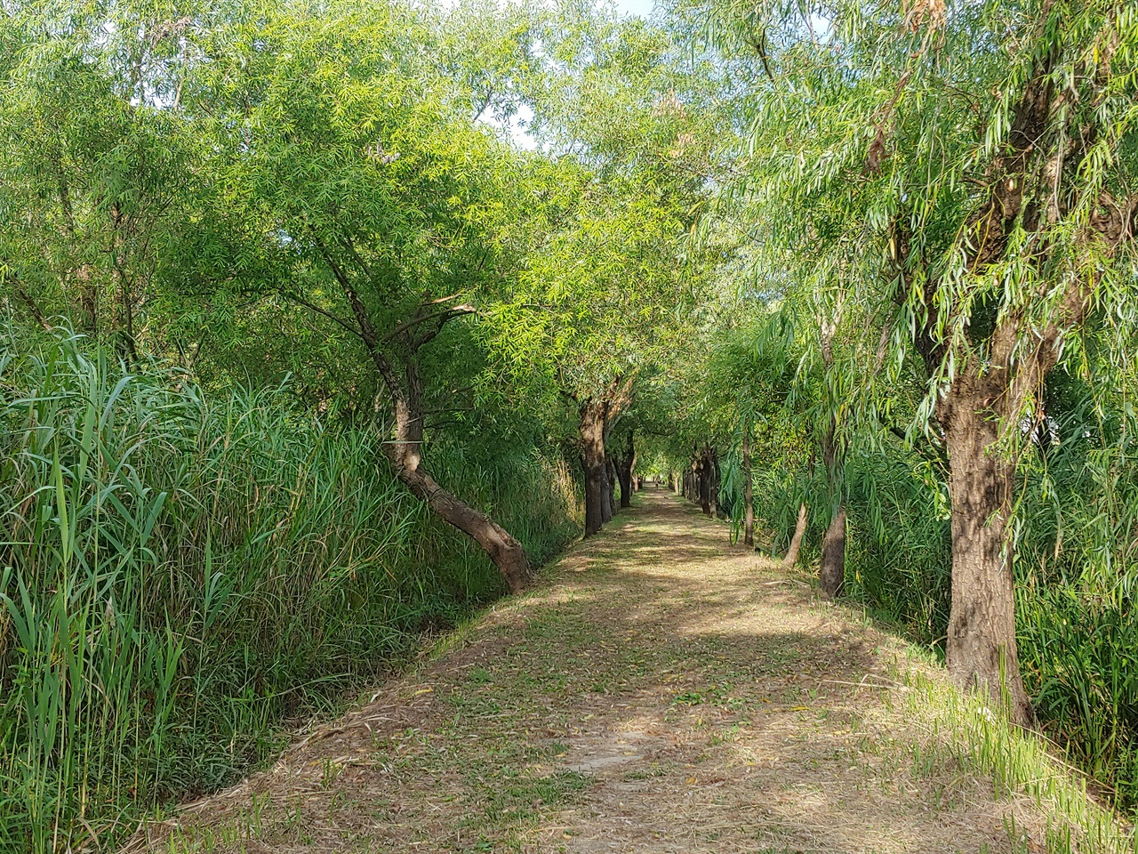 ▲ 삼락강변공원의 숲길.강변공원에는 12종목의 운동이 가능한 체육시설, 잔디광장, 야생화단지와 자연학습장, 사계절꽃동산, 문화마당 등이 있지만, 버드나무 숲길 등 좀더 자연적인 느낌을 받으며 걸을 수 있는 흙길과 자연 초지, 습지도 있다.