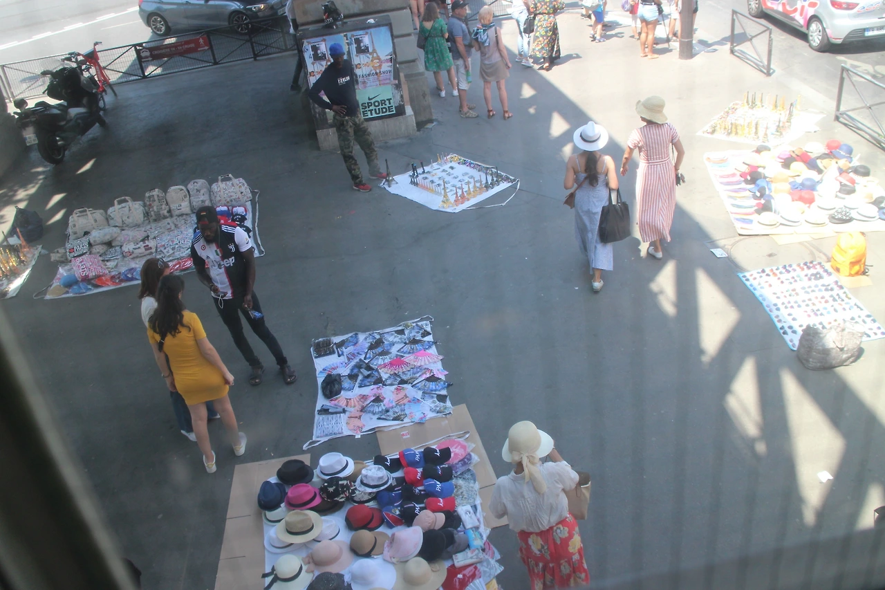 신기하다. 그렇지만 어마 무시한 감동이 폭포처럼 흘러내리진 않는다. 역 앞에 흑인들이 에펠탑 모양의 기념품과 시원한 얼음 생수를 팔고 있다.