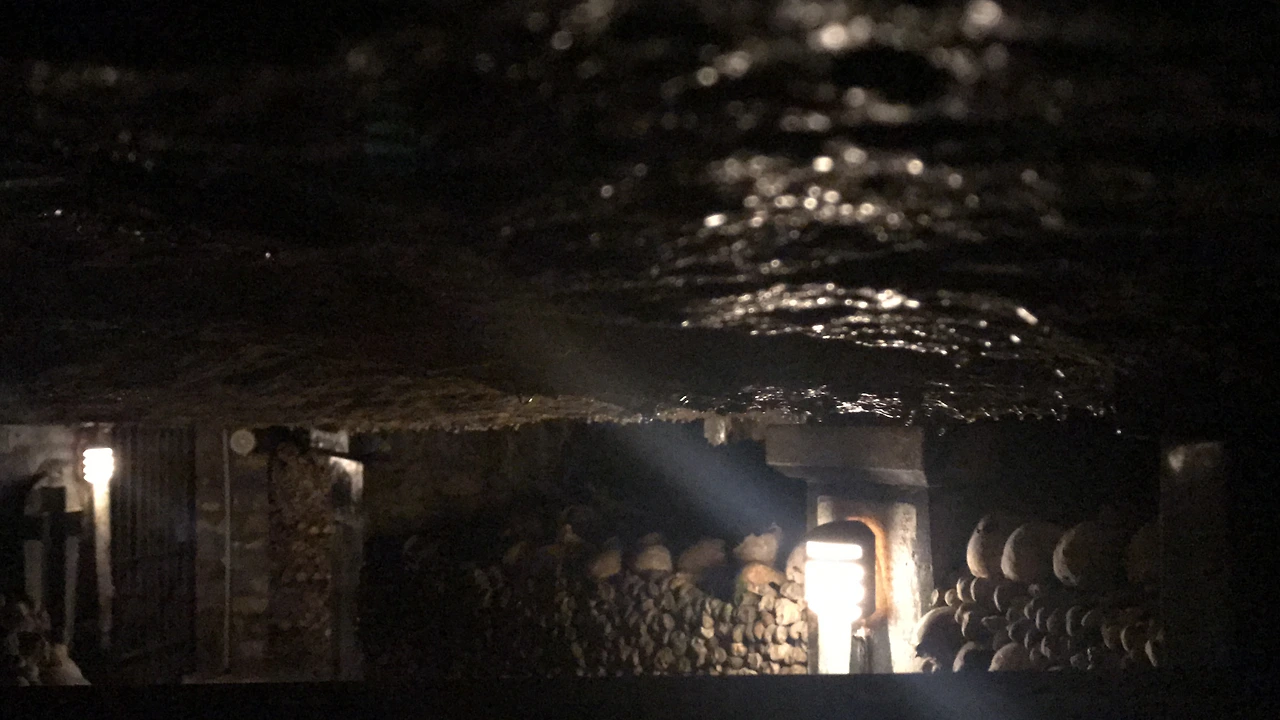 드디어 까따꼼브에 내려간다. 계단을 빙글빙글 돌아 꽤 깊숙이 내려간다. 높이 2미터 정도의 지하 굴로 이어진다. 앞사람이 있기에 조금 덜 무섭다. 무덤 속으로 들어가는 게 실감 나지 않는다. 바닥에서 축축한 습기가 느껴진다. 천장에는 물방울이 맺혀있다. 사후의 세계로 가는 길고 지루한 미로다. 기괴한 거 싫어하는 내가 구태여 이곳에 오고 싶었던 이유는 뭘까? 파리의 어느 관광지보다 먼저 이곳을 보고 싶었다. 죽음의 실체를 눈으로 직접 확인하고 싶었다. 뼈만 남아있는 수많은 유골들을 보면 뭔가 정신이 팍 하고 들 거란 기대를 한 것일까?