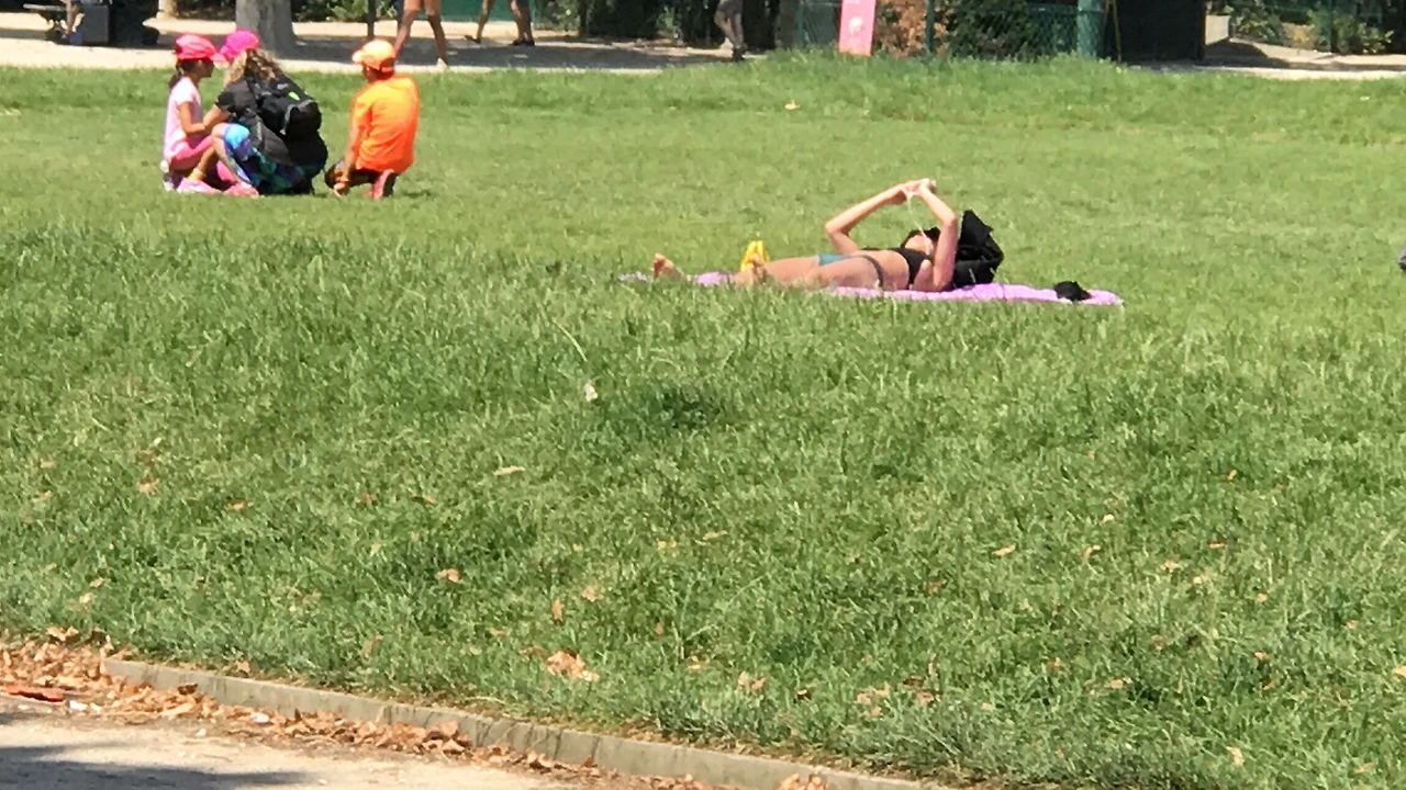 군인 4명이 에펠탑으로 올라가는 길 옆에서 기관총으로 무장한 채 경계 중이다. 불볕 날씨에 철모에 방탄조끼까지 입고 있다. 저 총에는 분명 실탄이 들어있을 것 같다. 에펠탑으로 올라가는 곳은 따로 벽이 있고, 입장료를 받는다. 생각보다 사람이 많지 않다. 비키니 수영복만 입고 풀밭에 누워 일광욕을 하는 젊은 여성이 보인다. 아무도 신경 쓰는 사람이 없다. 파리는 자유다.