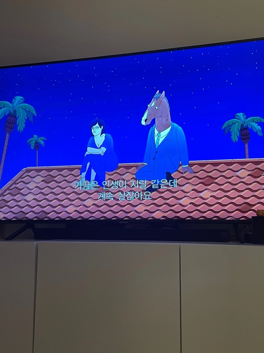 채널을 돌리기 위해 넷플릭스 목록을 헤매다가 보잭홀스맨을 봤다. 그리고 왠지 모르게 플레이를 했다. 시즌1의 1화는 끔찍했다. 동물의 모양을 한 사람들이 왜 등장하는지 아무 설명도 없는 불친절한 세계관. 너무 두서없고 산만하고 몰입이 되지 않는 장면들, 내가 그때 그 남자애를 좋아해서가 아니라 그냥 시즌초기에 틀이 잡히지 않은 모습이었다. 그런데 왜인지 리모컨을 돌려서 다른 넷플릭스를 찾는 게 귀찮아서였는지 모르지만 1편 2편 3편 4편... 6편 정도 됐을 때는 볼만했고, 시즌2를 다 봤을 때는 흥미진진했고 시즌3을 봤을 때는 이 감독은 천재인가 싶었다. 시즌6이 끝이라는 걸 알고 있어서 아껴서 봐야 되나 싶을 정도로.