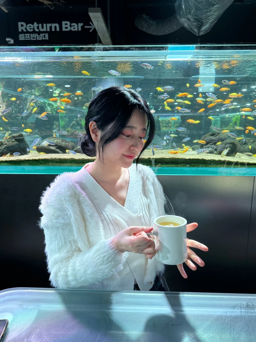 여자는 물고기를 보고 있었다. 아름다운 물고기를. 물고기의 투명한 비늘은 가볍고 유연해서 바람에 흩날리는 쉬폰 스커트 같았다. 그것은 전체적으로 오묘한 빛을 내고 있었다. 누군가 강제적으로 현광물질을 주사하기라도 한 것처럼 속에서 부터 설명할 수 없는 빛이 물고기를 감싸고 있었다. 빛나는 물고기는 바닥에서 천장으로 천장에서 벽으로 헤엄을 쳤다.