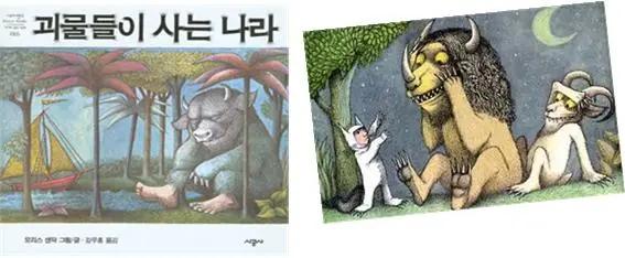 <괴물들이 사는 나라>(시공주니어, 2002)는 어린이들이 두려움을 느끼는 괴물 세계를 그리고 있다. 말썽을 부리다가 끝내 엄마에게 '괴물'이라는 소리를 들은 소년 맥스는 꿈속에서 정말 괴물의 나라로 가게 된다. 괴물 나라에서 거친 세계를 신나게 경험한 맥스는 떠나지 말라는 괴물들의 만류를 뿌리친다. 맥스는 잠에서 깨어 엄마가 자신을 위해 차려놓은 따뜻한 저녁을 보고 안심하게 된다.
