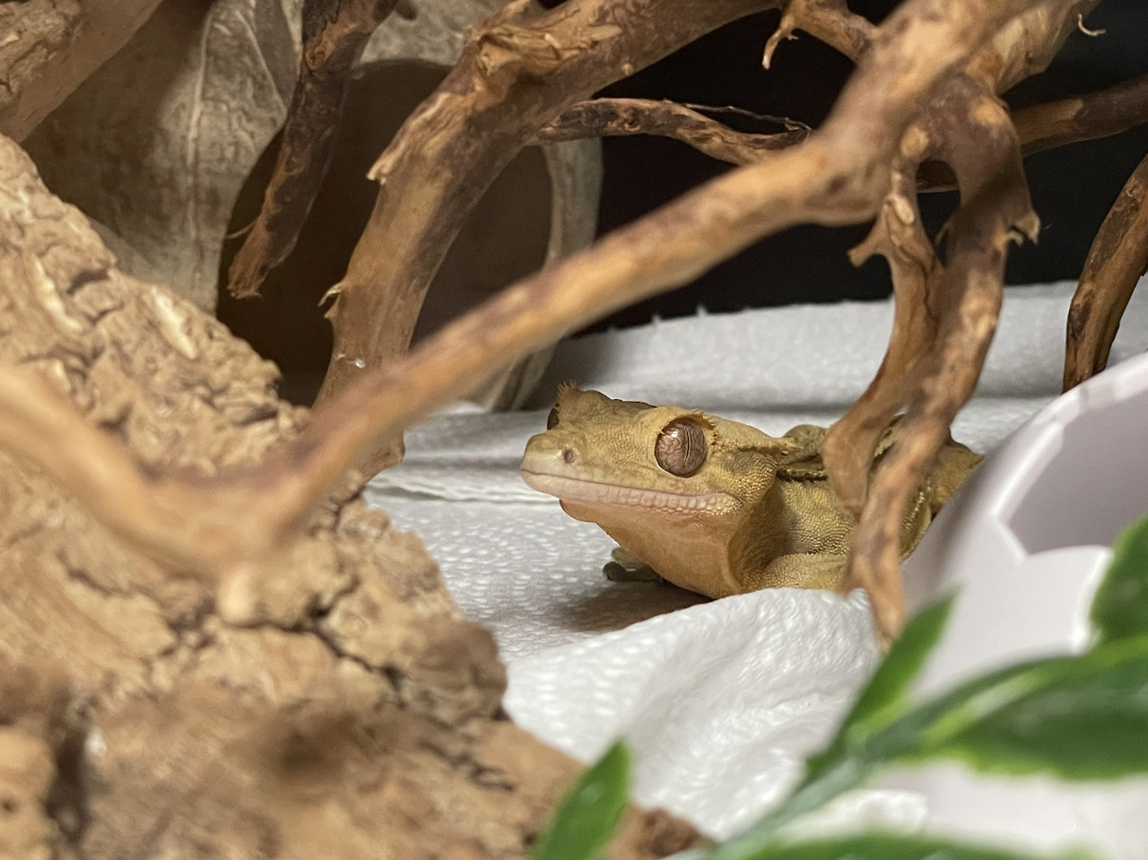 여름이는 야행성이다. 허니 내가 잠든 사이에 활동하며 논다. 놀이를 하니 즐겁고 야행성이니 어두운 환경이 좋을 것이다. 그래서일까. 캄캄한 어둠 속에서 여름이는 샛노란 색으로 변하고 눈동자도 쥐눈이콩처럼 새까맣다. 하지만 낮이나 밝은 불빛 아래에서는 노란색이 없어지고 갈색에 가까운 색깔이 된다. 또 스트레스를 받거나 탈피 시기가 되면 몸이 허옇게 되는데, 이는 여름이(크레스티도 게코) 피부에 크로마토포어라는 색소 세포때문이다. 색소 세포는 멜라닌, 카로티노이드 등의 색소를 포함하며, 외부 자극에 따라 색소를 퍼뜨리거나 모아서 색을 바꾼다. 또 색이 변하는 이유 중의 하나는 다른 개체와 접촉하거나, 짝짓기 시즌에는 더 선명한 색을 발한다. 일종의 의사소통이나 과시 행동의 일환으로 볼 수 있다.