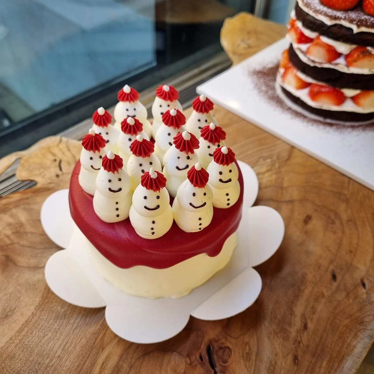 시어머니 손에는 자른 딸기 사이에 생크림을 얹어