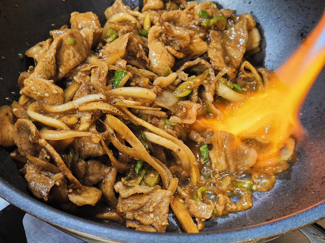 토치질을 하며 적당히 수분을 날리기 위해 웍질에 집중한다. 운동도 하지 않는 그에게 남은 유일한 근육이 이두, 삼두 그리고 전완근인 것은 어찌 보면 당연하다.