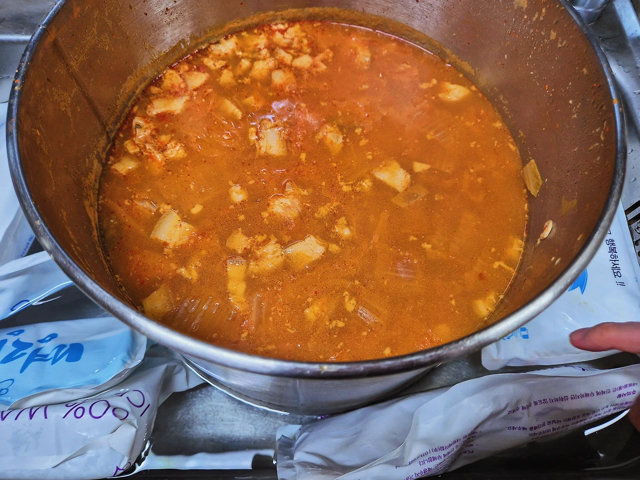 커다란 들통에 한가득 끓여간 김치찌개가 텅텅 비고 남편에게 김치찌개 레시피를 묻는 사람들이 하나 둘 모여든 걸 보면서 어젯밤 사람들이 어느 정도의 신 맛과 맵기를 선호할지 남편과 고민했던 대화가 떠오른다.