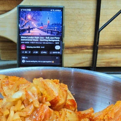 늦은 밤 재즈 들으며 김치를 쏭쏭 써는 남편