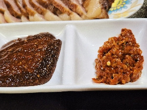 왼쪽부터 생굴무침, 칠게장, 미더덕쌈젓