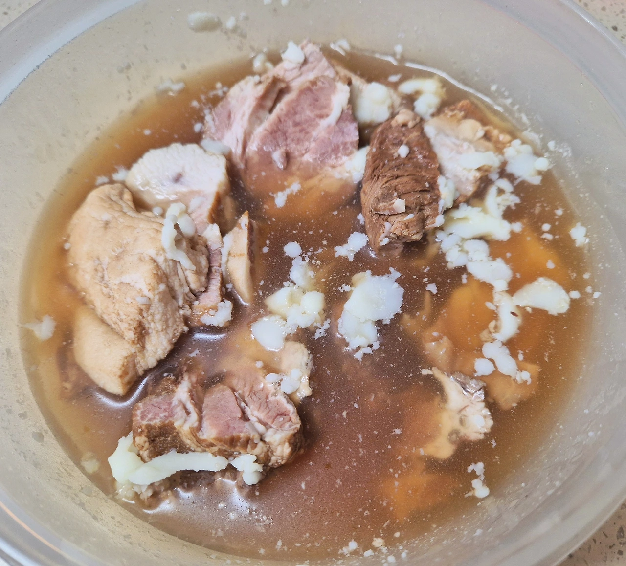 이번 주 먹은 메뉴 중 어떤 걸 글로 쓸지 모르니 우선 다 찍어두자. 조심스레 뚜껑을 여니 맛깔나게 썰어내고 남은 못생긴 고기 몇 점과 자작한 국물이 초라하고 보잘것없이 담겨있다.