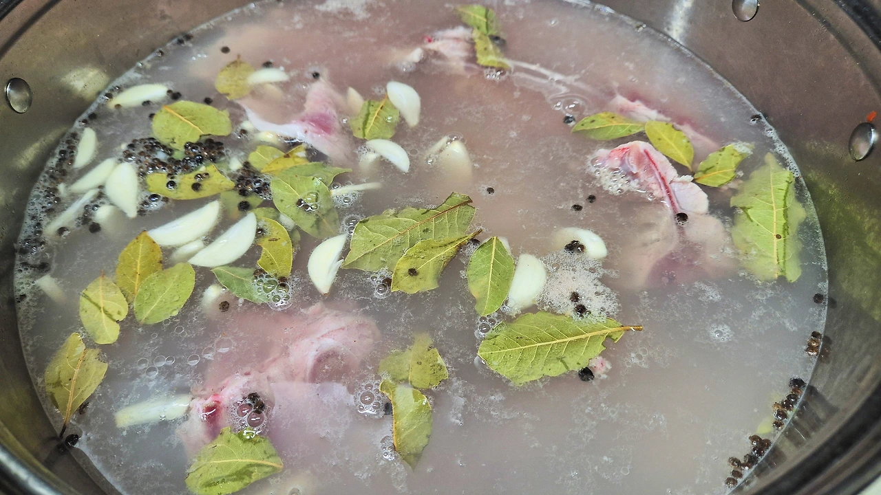 몇 시간 동안 물에 담가두어 핏물을 깨끗이 뺀 돼지등뼈를 팔팔 끓는 물에 통후추, 마늘, 월계수잎과 함께 투하한다. 한 번 데쳐낸 돼지등뼈는 흐르는 물에 씻어 새로운 냄비에 된장과 청주를 넣고 오래 끓여야 한다. 그때 해장국에 들어갈 우거지를 준비해줘야 하는데 우거지(말린 배추의 겉대)가 부족한 관계로 시래기(말린 무청)도 추가해 준다. 말린 우거지와 시래기는 물에 담가 불려주고 다시 삶아야 된다. 제대로 삶지 않으면 질기기 때문에 생각보다 시간을 확보해야 한다. 쭉쭉 찢어지는 우거지가 있어야 해장국이 제 맛이 나기 때문이다.