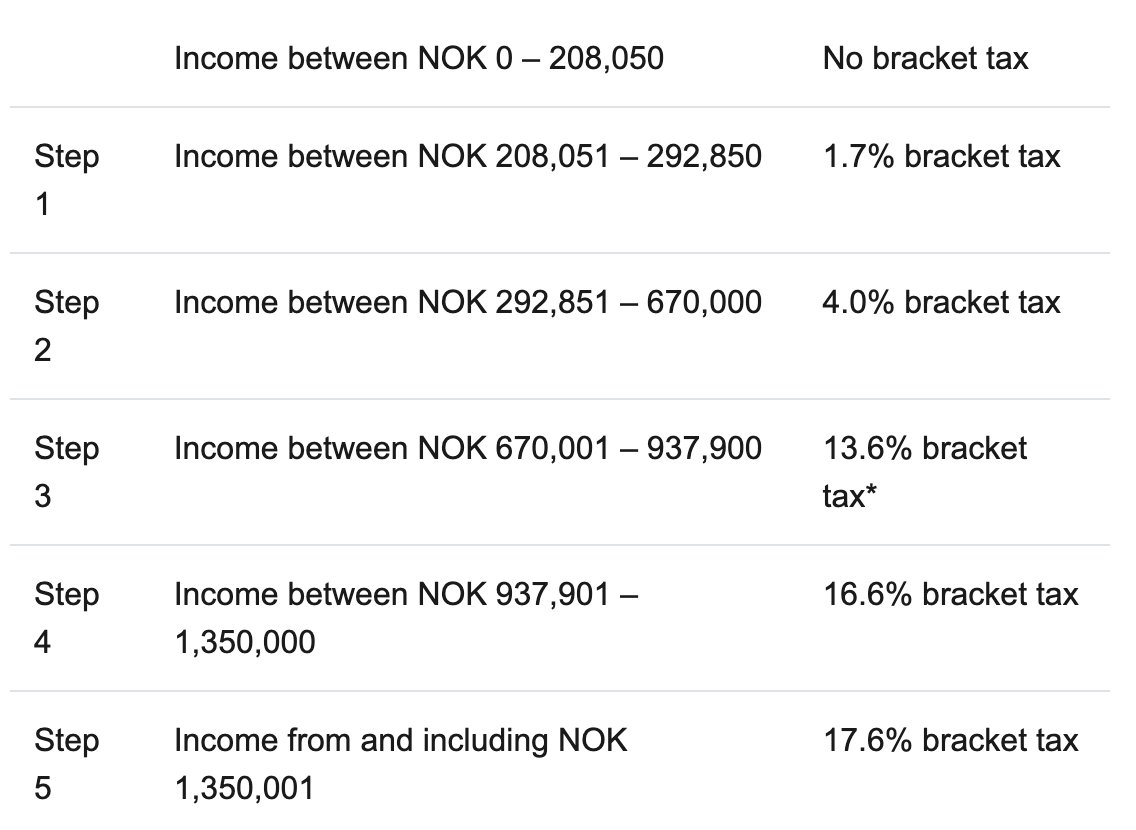 노르웨이는 선진국인데도 불구하고 비슷한 레벨의 다른 유럽 국가들과 비교하면 소득세가 상대적으로 낮은 편이다. 아마 산유국이라 나라 재정이 탄탄해서 그런 것 같지만 자세히는 모르겠다.