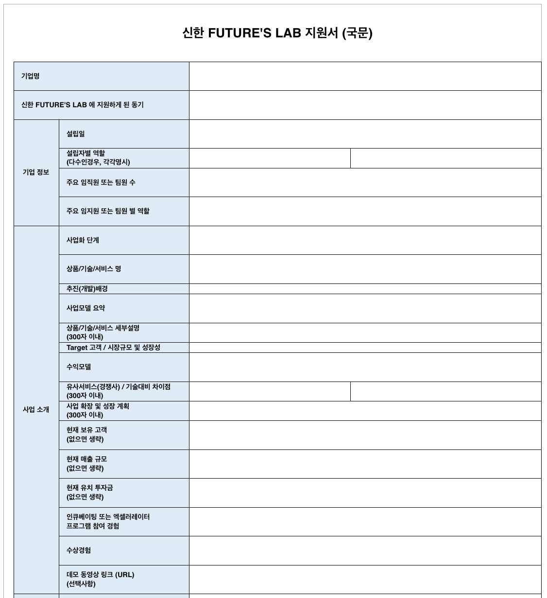 [ 신한 퓨쳐스랩 지원 양식 ]