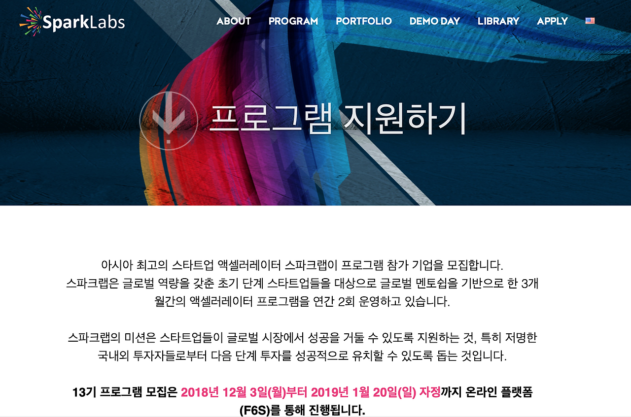 [ 대표적인 엑셀러레이터 Spark Labs 지원 화면 ]