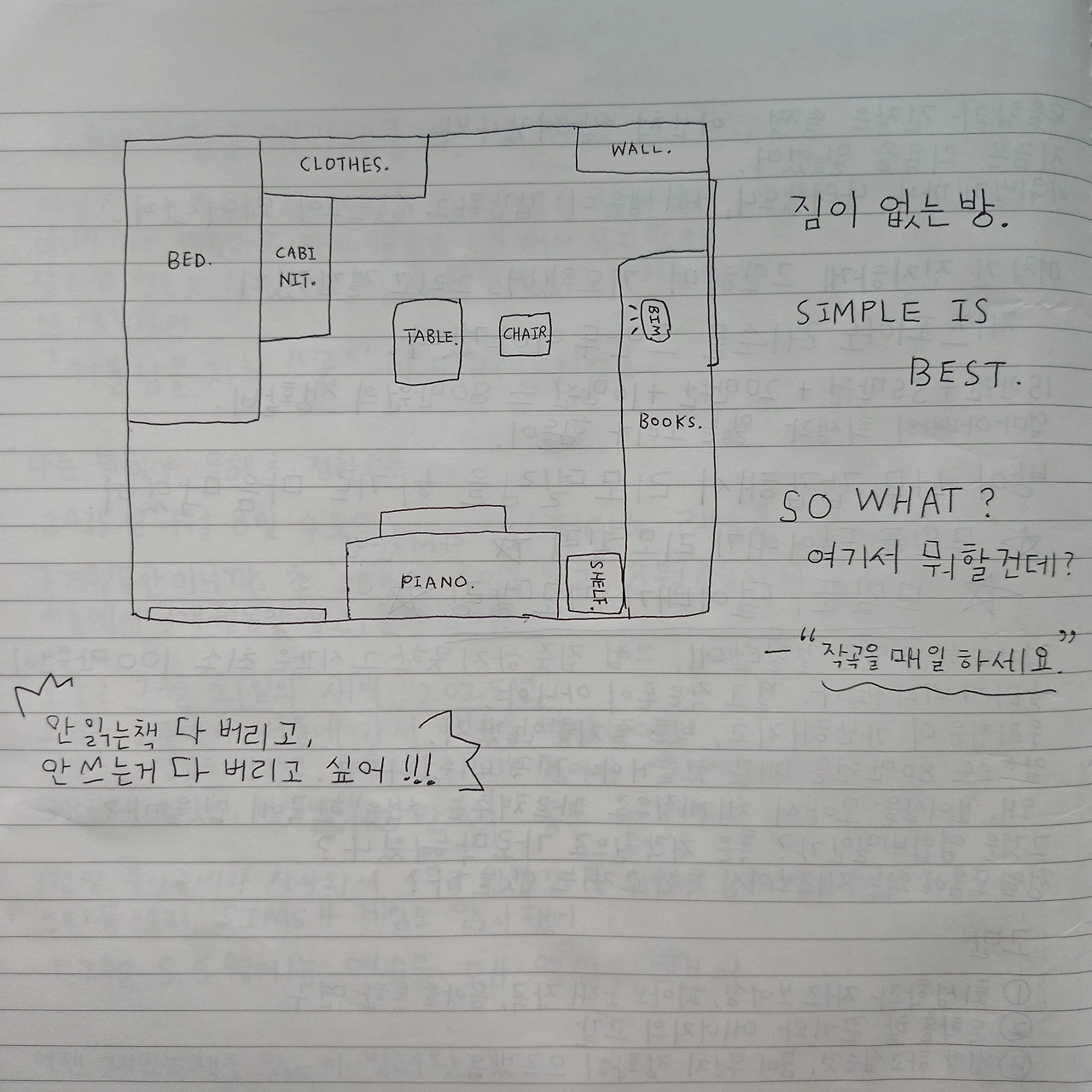 작곡을 매일 하세요. 피아노 치고 싶다. 성경 읽고 싶다.