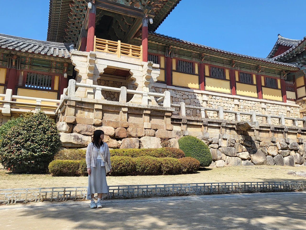 삼월치고 꽤 더워진 날이었다. 경주역에서 경주 시내 지역까지는 버스로 20~30분 정도 걸린다. 시내 인근에 있는 게스트하우스에 가방을 맡기고 불국사로 출발했다. 대도시가 아니라서 배차 간격이 너무 길까봐 걱정했는데 다행히 시내 쪽에서는 버스가 꽤 많았고 생각보다 자주 다녔다. 경주 시내에서 불국사까지는 대략 15km? 정도 거리로 알고 있는데 서울이었다면 버스로 1시간 꼬박 걸릴 거리지만 경주에서는 30분도 안 걸린 것 같다. 버스가 이렇게 쌩쌩 달릴 수 있는 이동수단이었다니? 우리 집에서 5~6km 거리인 잠실까지 버스로 30분이 걸리는데!! 지방 사람들이 서울에 와서 서울은 여유가 없다고 느끼는 이유가 역체감된다.