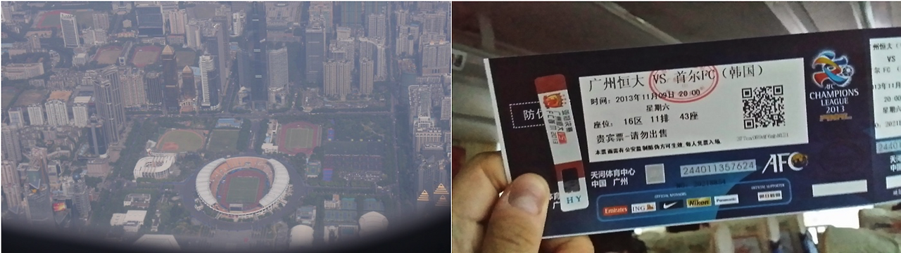 2013년 11월 9일 오전 6시, 나는 중국 광저우로 향하는 비행기에 올랐다. 중국에 가보는 것은 처음이었지만, 내 마음은 설렘보다는 긴장이 가득했다. 왜냐하면 이 비행기는 2013 AFC 챔피언스리그 결승 최종 2차전, 광저우 에버그란데 FC와 FC서울의 경기를 응원하러 적진 한가운데에 침투되는 파병 전세기였기 때문이다.