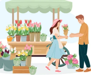 평소 무뚝뚝했던 남편이 오랫만에 큰 마음을 먹고 결혼기념일에 꽃을 사서 집에 들어가려고 한다. 꽃집 앞에서 남편은 헛기침만 하고 쉽사라 들어가지 못한다. 이걸 본 눈치 빠른 점원은 결혼기념일에 어울리는 흐드러지게 핀 빨간 장미 50송이를 내민다. 무뚝툭해 보이는 남자가 꽃집 앞을 서성거리는 행동에서 이 사람이 무엇을 원하는지 의도를 알아차린 것이다.
