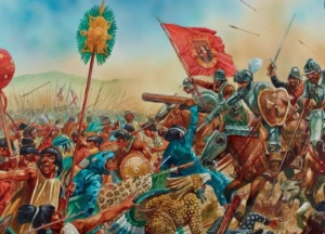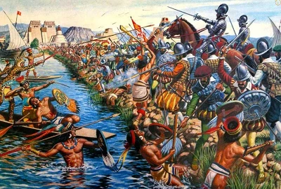 아즈텍이 당연히 가만히 있었을 리가 없다. 이들은 주변 첩자들을 활용해 그들이 틀락스칼라로 가고 있다는 소식을 접하고 빠르게 뒤쫓았다. 마침내 그들은 오툼바 평원이라는 곳에서 맞닥뜨리게 된다. 스페인 병사들은 지치고 다친 병사 400명, 아즈텍은 2만 명이었다. 50대 1의 싸움이었다. 이건 누가 봐도 승패가 결정된 싸움이었다.