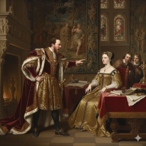 헨리 8세의 첫 아내는 카탈리나였다. 그녀는 스페인 국왕 페르난도 1세의 공주였다. 정략결혼이었던 셈이다. 사실 그녀는 헨리 8세의 형이었던 아서 튜더와 이미 결혼한 몸이었다. 그런데 아서 튜더가 결혼 4달 만에 갑작스럽게 병에 걸려 죽고 말았다. 영국이 고대 유목민 사회도 아니고 형이 죽으면 동생이 형수와 결혼하는 풍습은 없는 사회였기에 원칙대로라면 카탈리나는 본국인 스페인으로 돌아가야만 했다.