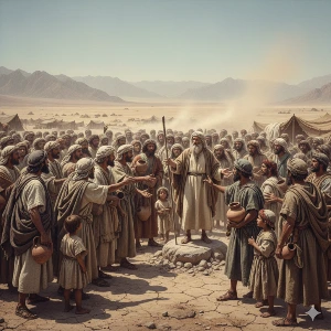 그러나 이집트에서 이스라엘 땅까지의 여정은 순탄하지 않았다. 그 지역은 사막에 황무지였다. 곡식은커녕 물도 없었다. 매일 걷는 통에 다리는 아파왔다. 처음에는 꿈과 희망에 부풀었던 이스라엘 사람들은 조금씩 모세에게 불평하기 시작했다.