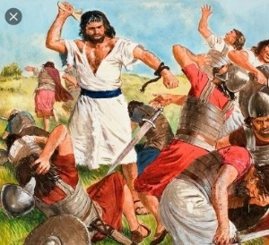 '삼손'은 우리가 잘 아는 힘센 사람의 전형이다. 그는 태어날 때부터 포도주를 마시지 말고 머리카락을 자르지 말라는 하나님의 명령을 받는다 (이를 나실인이라고 한다) 그러나 그는 자유분방한 사람이었다. 기분 내키는 대로 행했고, 당시 이스라엘의 적국이었던 블레셋을 자주 공격하여 블레셋 사람들의 분노를 사게 되었다.