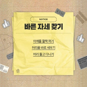포스트잇으로 눈에 띄는 곳에 아래와 같이 "자세 바로 하기" 를 큼지막하게 붙이자.