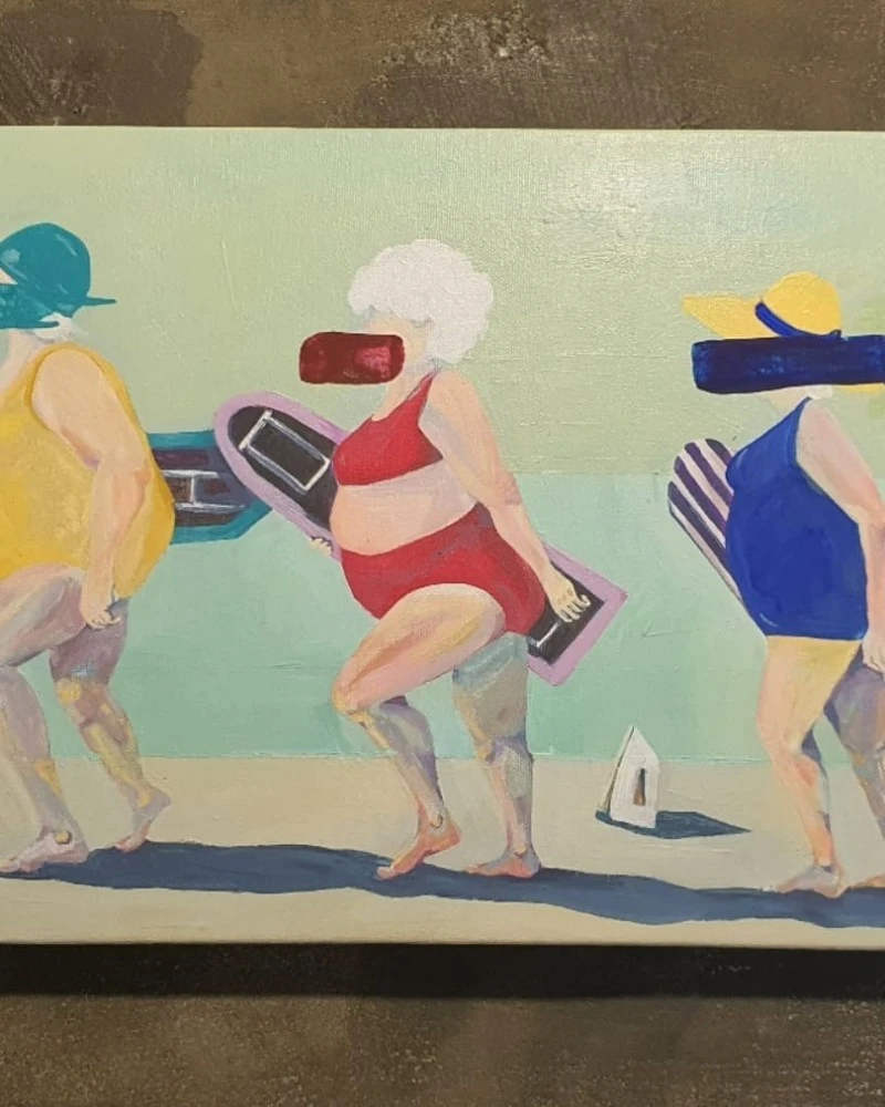 작년 여름휴가철에 난생처음 나도 그림을 샀다. 개항로에 있는 갤러리에서 구경을 하다가 오른쪽으로 시선을 돌렸더니 벽에 걸린 그림이 딱 내 눈에 들어왔다. 작품 이름은 <summer trio> 세 명의 중년 여성들이 수영복을 입고 윈드서핑 장비를 챙겨 수영장으로 가는 모습이다. 중년 여성의 모습답게 배도 나오고 다리에 힘줄이 보인다. 난 그 작품을 보자마자 맘에 들었다. 나이를 떠나서 하고 싶은 건 당당하게 하고 살자는 여성들의 멋진 모습에 반했다.