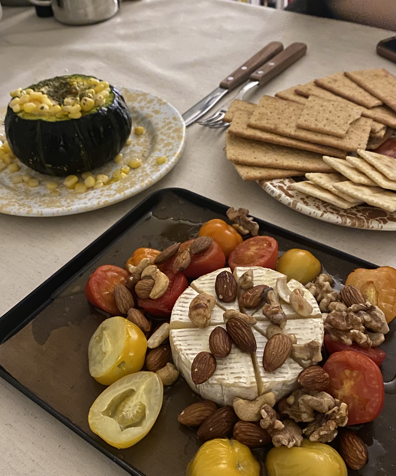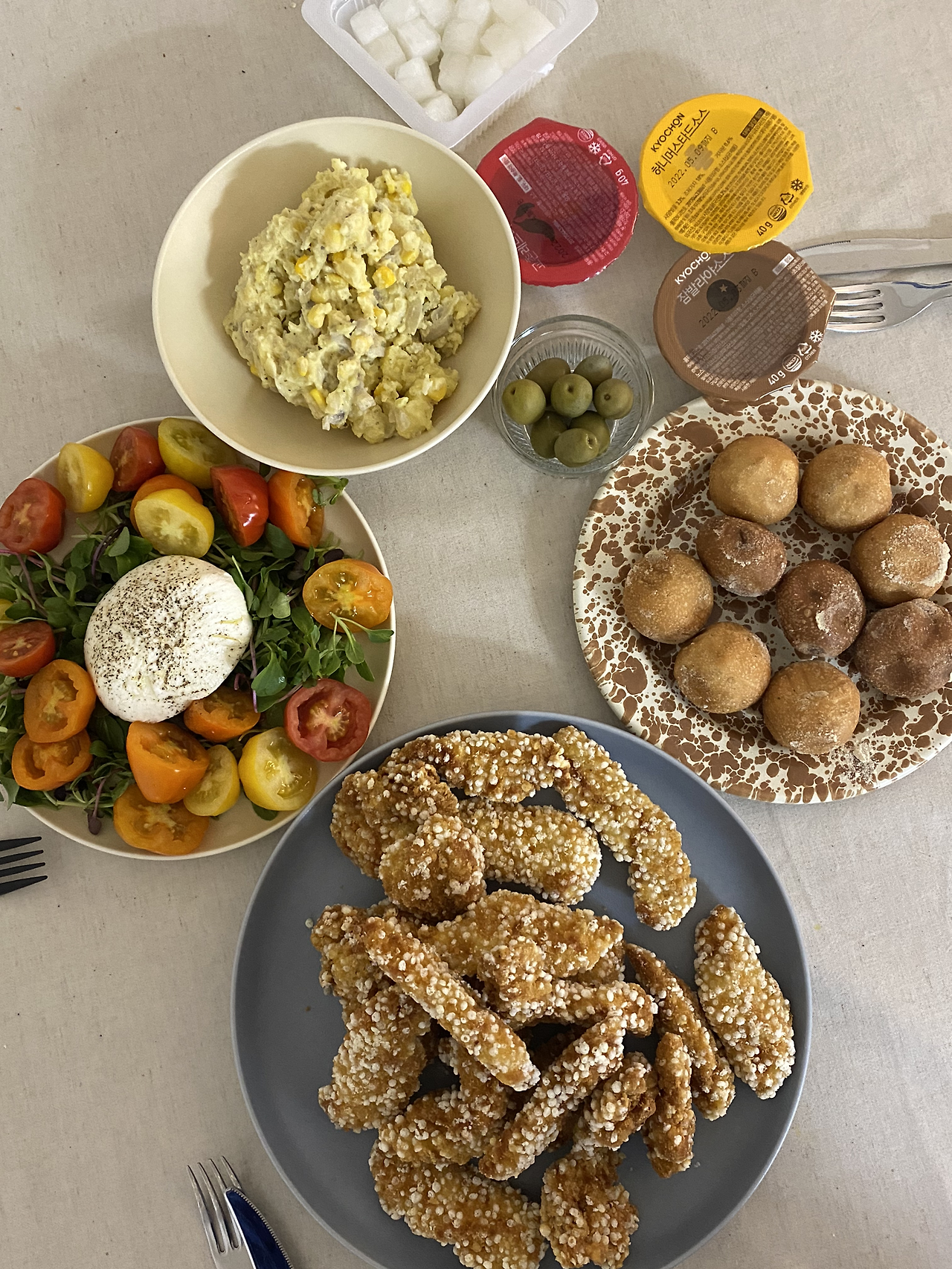 앞서 언급했듯이 2021년 연말 모임을 준비하면서 새롭게 음식을 준비할 기회도 더 많았다. (그럴 리 없겠지만) 치킨이 심심하지 않도록 감자 샐러드, 부라타 치즈, 또는 카프레제 샐러드와 같은 사이드 메뉴를 준비했고, 친구들이 각자 준비한 메뉴 덕분에 식탁이 더 풍성해지기도 했다. 연말 모임에 맞춰 케이크를 사전 예약해준 친구도 있었고, 함께 하지는 못하지만 멀리서(?) 그 누구보다 멋지게 치킨 쿠폰을 보내준 고마운 인연도 있었다. 올해 새롭게 도전해본 메뉴 중에는 브리치즈 구이가 있는데 말 그대로 브리 치즈에 올리브유를 뿌리고 토마토와 견과류 토핑에 꿀을 더해 오븐에 구워내는 요리다. 여기에 통밀 크래커나 흔한 참 크래커를 함께 곁들여 먹으면 웬만한 와인바 부럽지 않은 안주 메뉴가 탄생하는데 덕분에(?) 1월 초인 지금 허리가 아주 부풀어 올라있다. 즐거움뿐만 아니라 연말 뱃살까지도 기꺼이 허락할 수 있는 아주 맛있는 메뉴다. 비주얼을 말할 것도 없고 말이다!