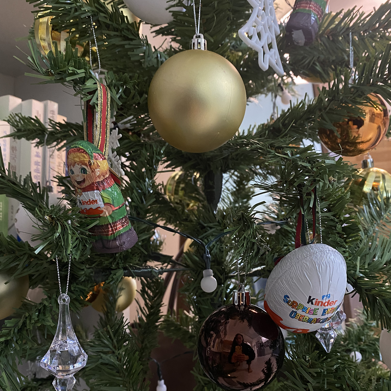 그렇게 인생 첫 크리스마스트리를 구매했다! 생각보다 배송도 빨라서 주중에 시키고 도착 문자를 받은 날엔 평소보다 일찍 퇴근해서 트리를 꾸미기 시작했다. 처음 조립해보는 거였지만 (나름 공대생이라 이런 거 또 되게 좋아하고 잘하면 뿌듯해하는데) 손쉽게 설치하고 오너먼트도 꾸밀 수 있었다. 그리고 또 나만의 센스를 발휘해서 친구가 선물 준 킨더 (Kinder) 어드벤트 캘린더의 초콜릿을 더 달아주기도 했다. 훨씬 더 개성이 생긴 느낌이랄까. 스스로의 센스에 감탄하고 자아도취하며 퇴근하고 잠들기 전까진 반짝거리는 조명을 켜 두기도 했다. 아~ 정말 느낌 있어.