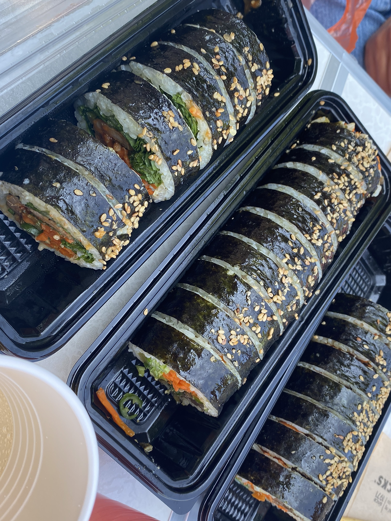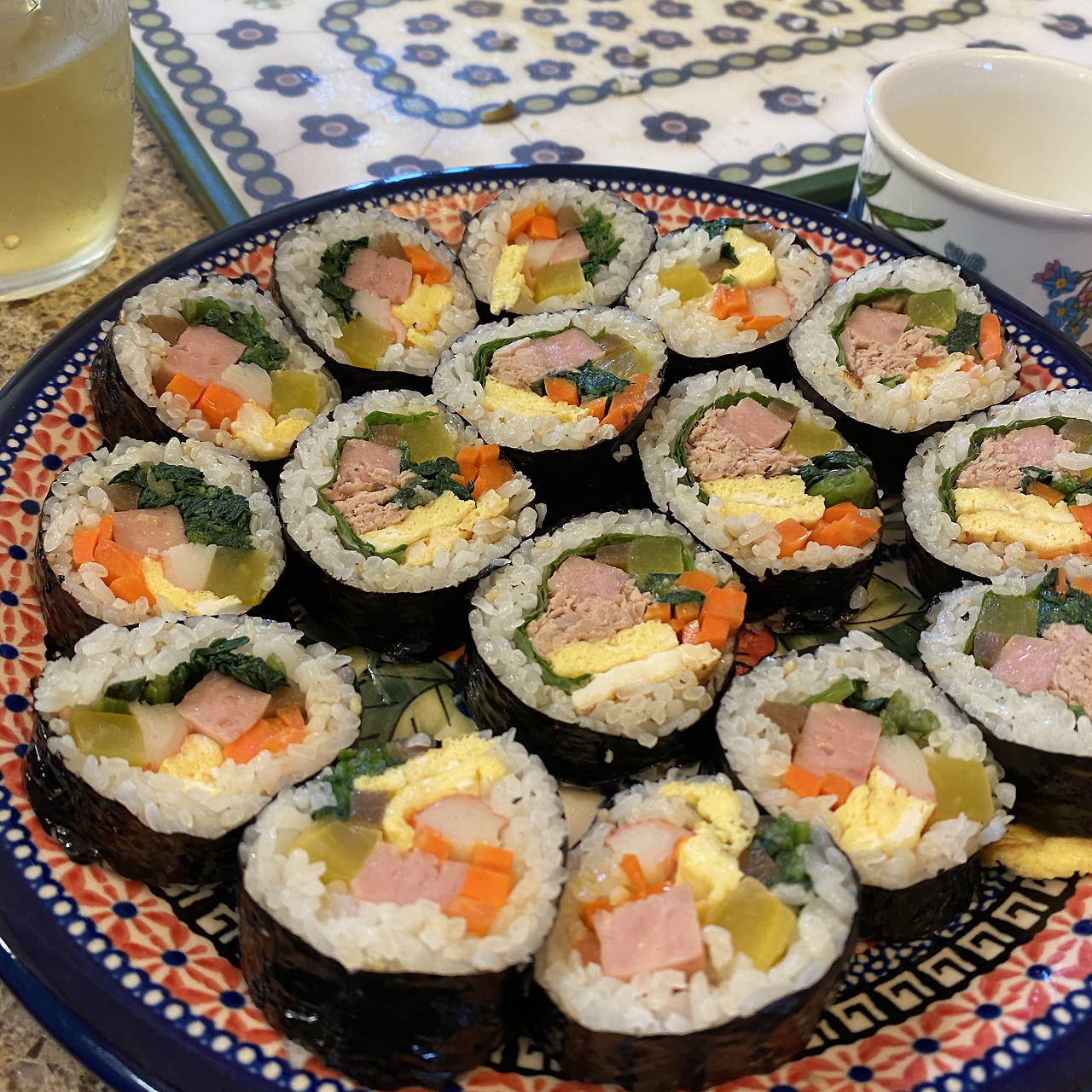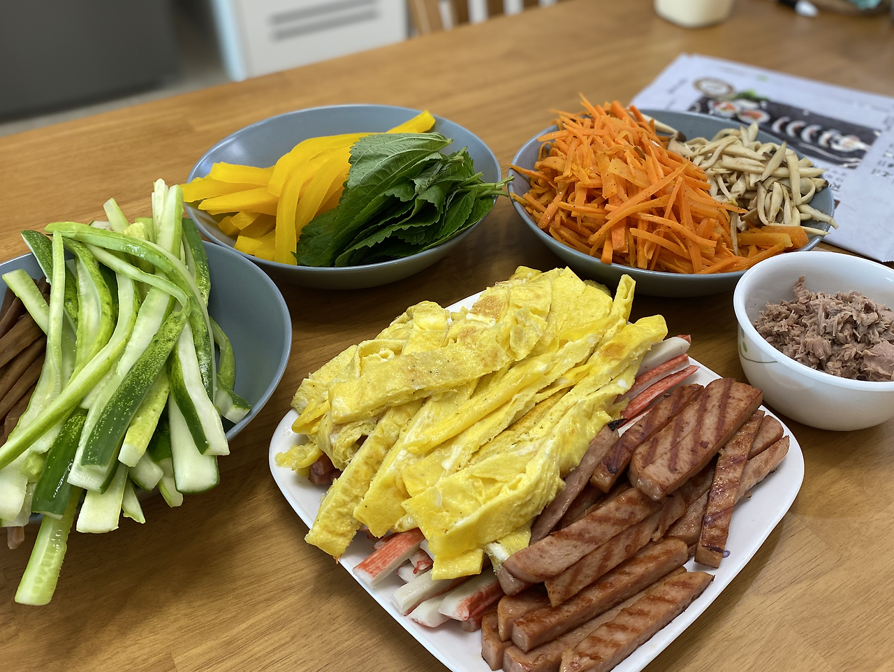 사실 요즘엔 김밥 마저 '프리미엄'이 생겨서 '서민 음식'의 대표 선수인 김밥 마저 비싼 음식 중 하나가 되어가고 있다. 그래서 다소 신경 써야 하는 약속 자리에도 김밥을 메뉴로 제안해도 괜찮을 것 같기도... 속재료를 푸짐하게 넣고 비싼 유기농 재료를 고집했다는 이유로 만 원이 훌쩍 넘는 김밥도 목격한 적 있는데 우리나라 김밥 마저 일본식 비싼 김밥인 '후토마키'와 같은 럭셔리 음식이 되어 가볍게 즐기지 못하게 되면 어떡하나 싶다. (김밥이 더 맛있는데 말이다!) 그럴 땐 직접 만들어 먹어야지 뭐. 실제로 우리 엄마 아빠는 집에서 김밥을 만들 때 최고의 팀워크를 자랑하시는데 어머니는 재료 구매와 손질을 담당하시고 아버지께서는 입술을 꾹 다물고 김밥을 예쁘게 쌓는데 열을 올리신다. 가족끼리 직접 만들어 먹기도 하고 한강 공원으로 나들이 갈 때도 김밥을 자주 사 먹기도 하는데 이동도 편리하고 여기에 컵라면이나 핫도그 같은 간식거리를 더해주면 금상첨화의 피크닉 메뉴다. 빨리 날씨가 또 따뜻해졌으면 좋겠다.