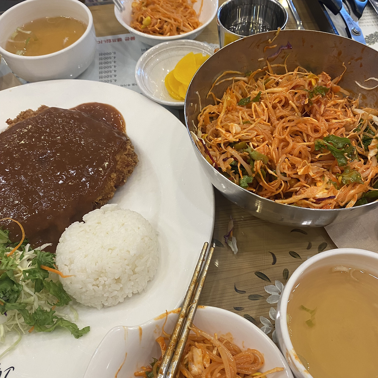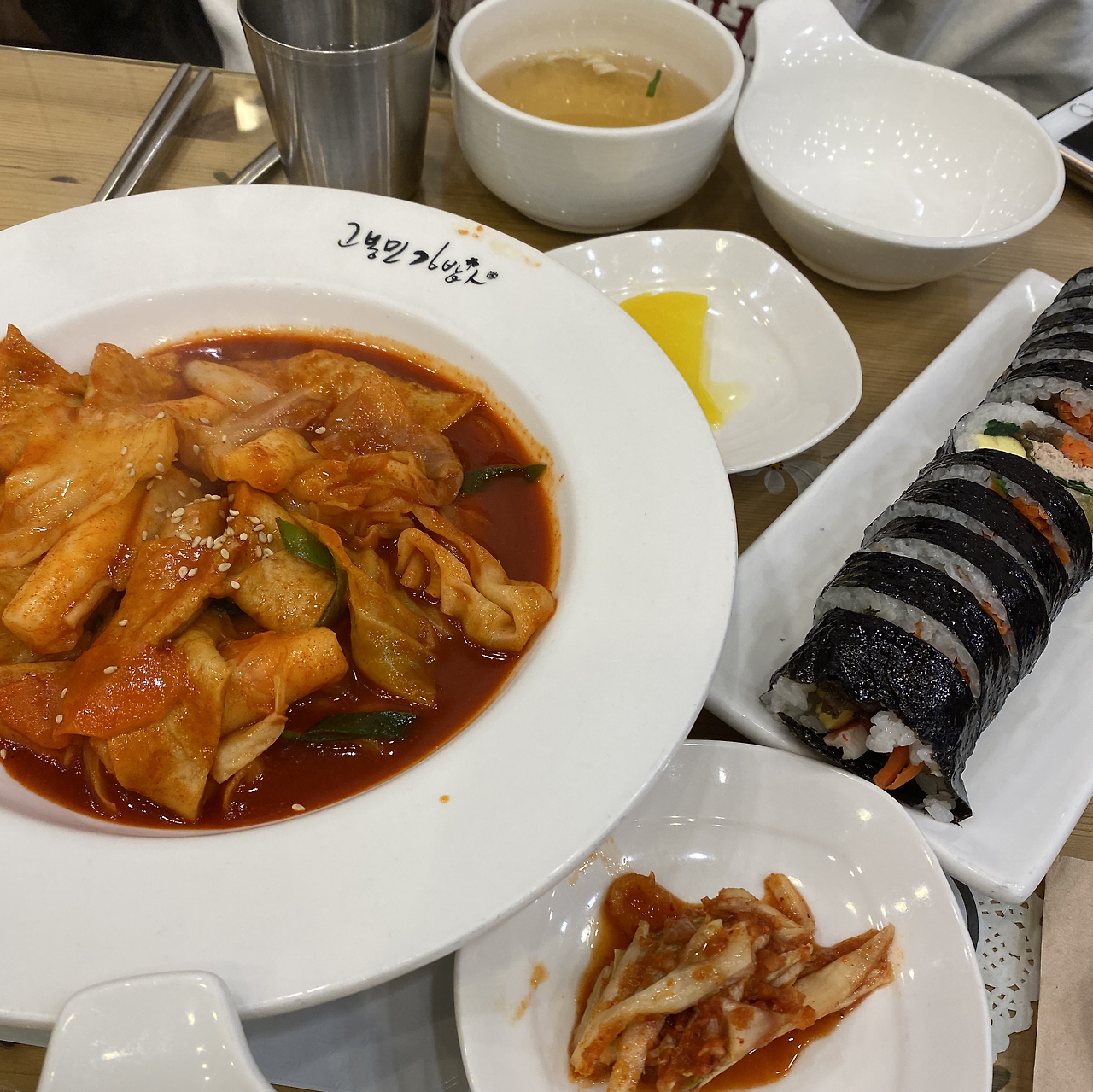 내가 다니는 학교 주변에는 작은 상권이 있다. 하지만 여기는 소위 말하는 '대학가, ' '캠퍼스 타운'이라고 일컬어지기엔 어려운 게 큰 아파트 단지가 바로 옆에 있고 구청과 초등학교, 그리고 중학교가 자리 잡고 있어서 용돈이 부족한 대학생들을 위한 물가를 자랑하는 곳은 아니다. 그래서인지 학교 옆 상권 중 점심시간 또는 저녁 시간만 되면 학식 마냥 학부생들 그리고 대학원생이 줄을 지어 찾는 곳이 있는데 이는 바로 고봉민 김밥 분식점이다. 이곳에서는 모두가 상상할 수 있는 분식 메뉴를 판매하고 있다. (이렇게 말하고 보니 순대 메뉴가 없어 아쉬운데 프랜차이즈 매장이라 따로 메뉴를 제안드리기엔 어려울 것 같다. 아쉽네.) 각종 김밥부터 다양한 떡볶이 종류 (치즈, 떡, 라면 등을 더할 수 있는 선택지가 있다), 그리고 김치볶음밥, 오므라이스와 같은 볶음밥류도 있다. 뿐만 아니라 쫄면, 잔치국수와 같은 면류, 그리고 돈가스나 비빔밥, 떡만둣국과 같은 든든 메뉴도 많다. 나 역시 친구들과 함께, 연구실 동료들과 함께 간단하고 빠르게, 하지만 맛있고 저렴하게 식사를 해결하고 싶은 날엔 분식점을 자주 찾았다. 자주 간만큼 모든 메뉴를 정복해본 것은 아니고, 내가 갔을 때 꼭 시키는 메뉴는 김밥과 라볶이, 또는 돈가스와 쫄면 이렇게 두 쌍의 메뉴가 개인적인 최애 조합이다.
