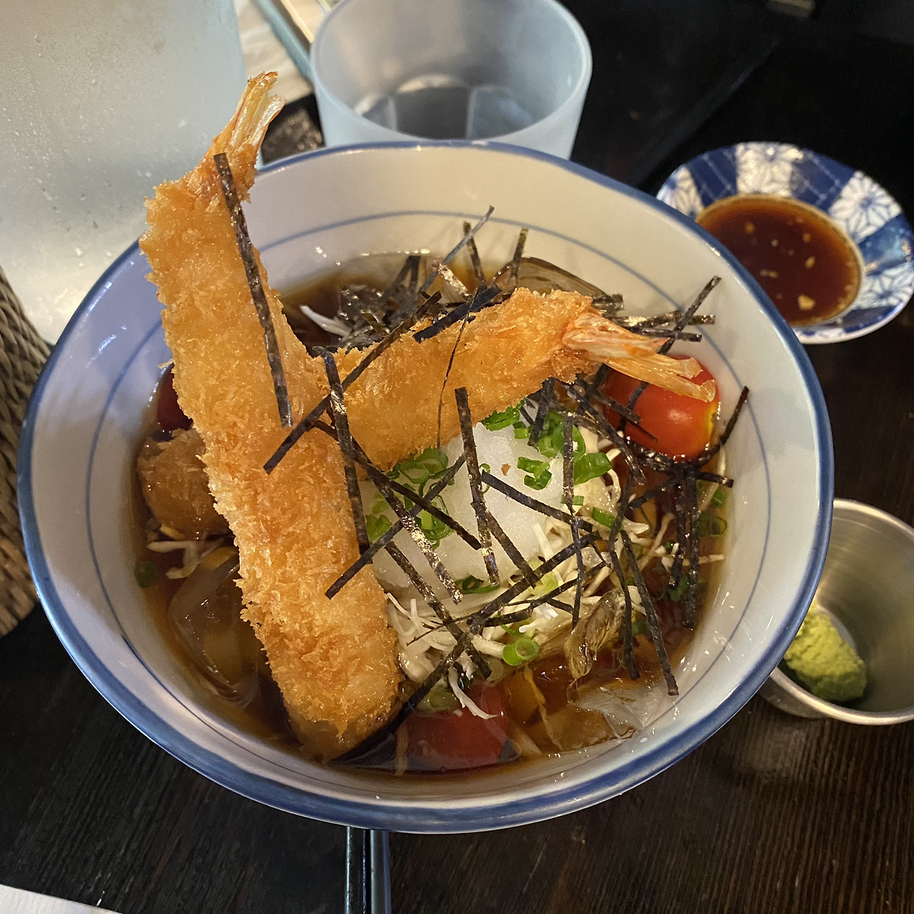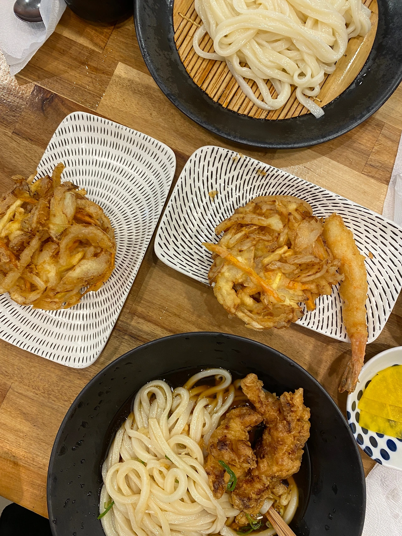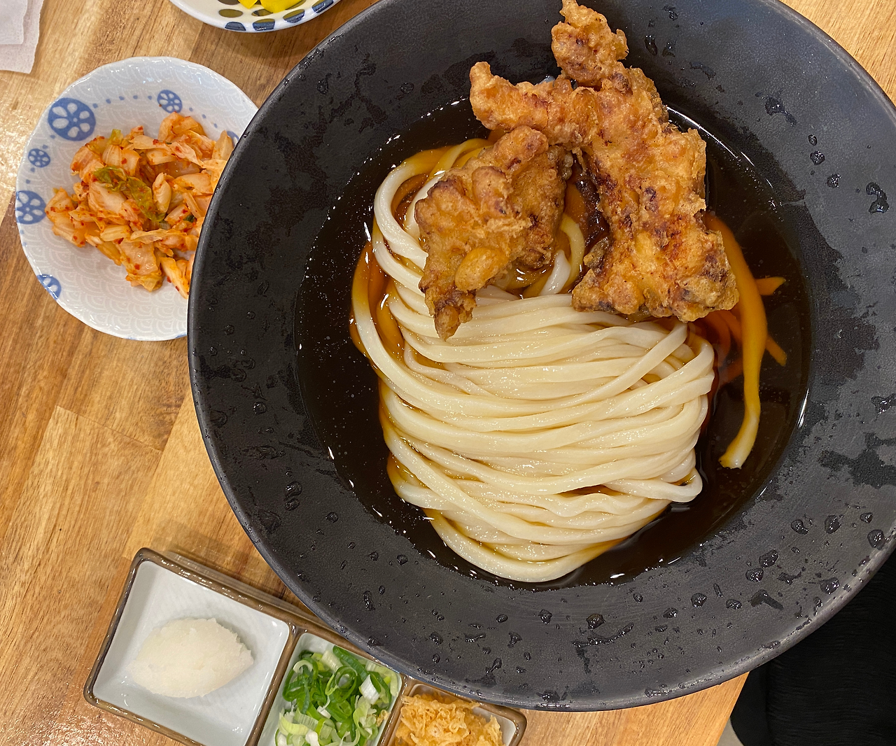 그리고 맛도 훌륭했다! (역시 여러 명이 추천한 이유가 있었군.) 나는 토리텐 붓카케 우동에 (혼자 치킨을 시켜먹지는 않지만 기회가 된다면 치킨 먹는 일을 참 좋아한다. 일본 가정식을 먹을 때도 본인의 최애 메뉴는 항상 치킨 가라아케 정식이다.) 야채튀김을 추가했다. 야채튀김?이라는 반응일 수도 있지만 워낙 입맛 동기화로 소문이 난 친구가 강력히 추천한 덕분에 꼭 야채 튀김을 주문해서 맛을 보았다. 그리고 그 친구와 한 번 더 깊은 우정을 확인했다. 양파와 감자 그리고 당근을 잘게 썰어 야채 뭉치를 튀겨낸 메뉴였는데 야채만으로도 참 달고 맛있었다. 역시 튀겨서 맛 없어지는 식재료는 없는 것일까. 쯔유 국물이 다소 짭조름하게 느껴졌지만 튀김과 함께 먹었을 때 그 맛을 잡아주어서 충분히 맛있었고, 주방에서 직접 면을 만드는 모습을 보며 공연을 관람하는 느낌도 받았다. 정말 맛있게 먹은 점심이었다.