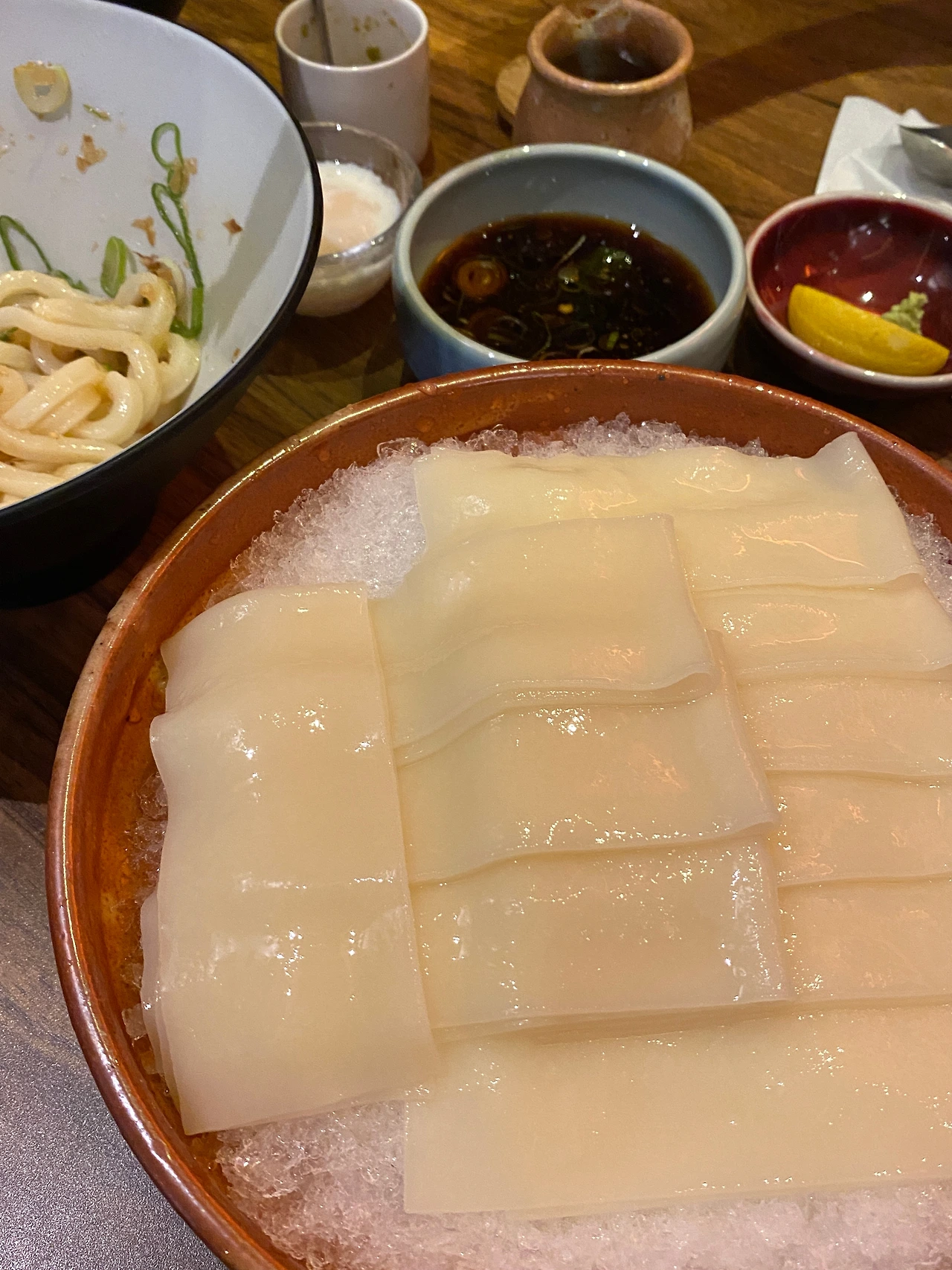 소문난 잔치에 먹을게 참 많은 곳이었다. 탱글탱글한 면 발이 유독 맛있는 우동집이었고, 반숙란을 얹어 먹는 붓카케 우동 역시 참 맛있었다. 납작 우동은 말 그대로 납작한 우동 면 가닥이 여러 개 나와서 쯔유 국물에 적셔 먹는 메뉴인데 씹는 재미가 있었다. 한창 유행 중인 떡볶이 분모자와 비슷한 식감이려나.