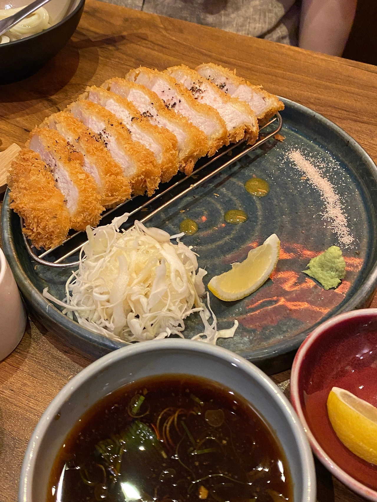단백질 섭취를 위해(?) 주문한 등심 요리 역시 맛이 좋았다. 우동 전문점이다 보니 돈카츠 역시 대표 메뉴라고 할 수 있을지 모르겠지만 양배추 샐러드와 고추냉이를 곁들였을 때 조합이 훌륭했다. (하지만 식사를 마치고 나서는 길에 크로켓을 주문한 테이블을 여럿 보았는데 다음 기회가 주어진다면 반드시 크로켓을 먹어봐야겠다고 생각했다.)