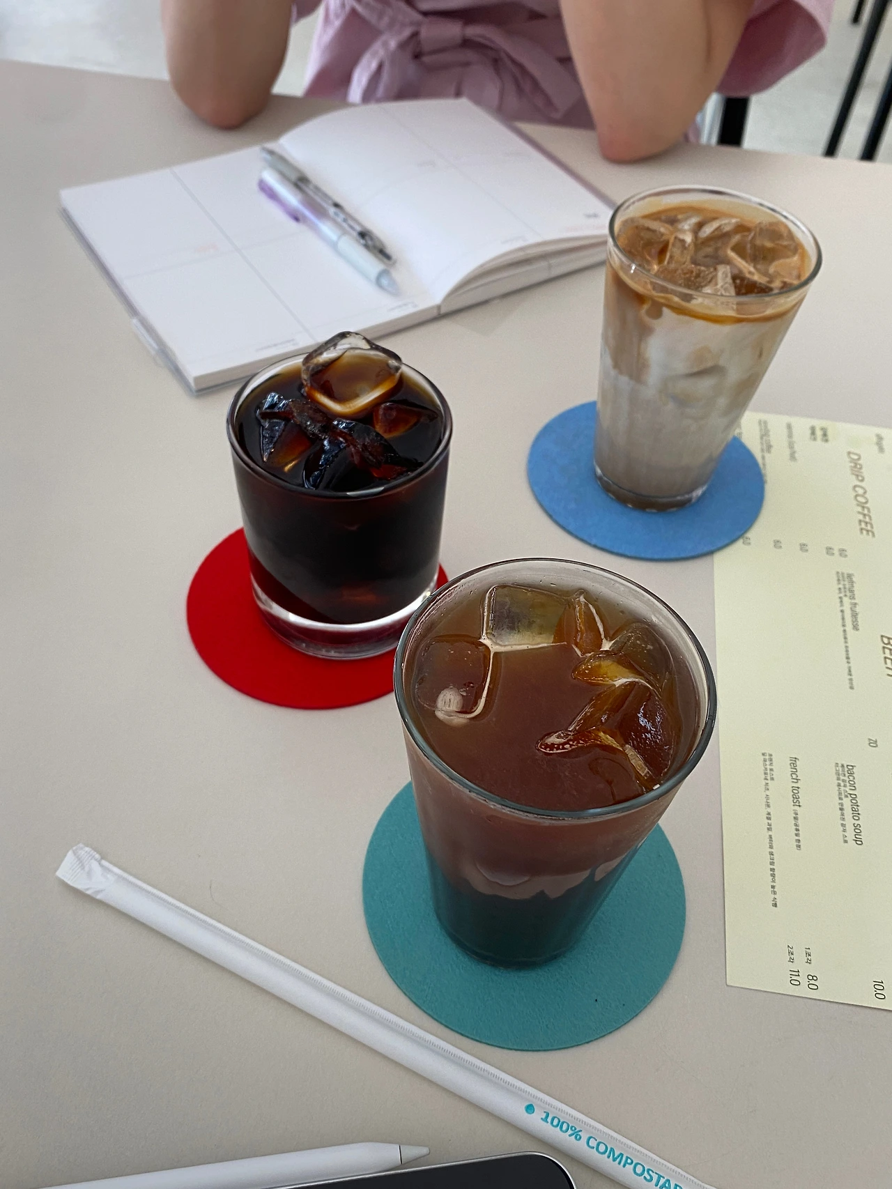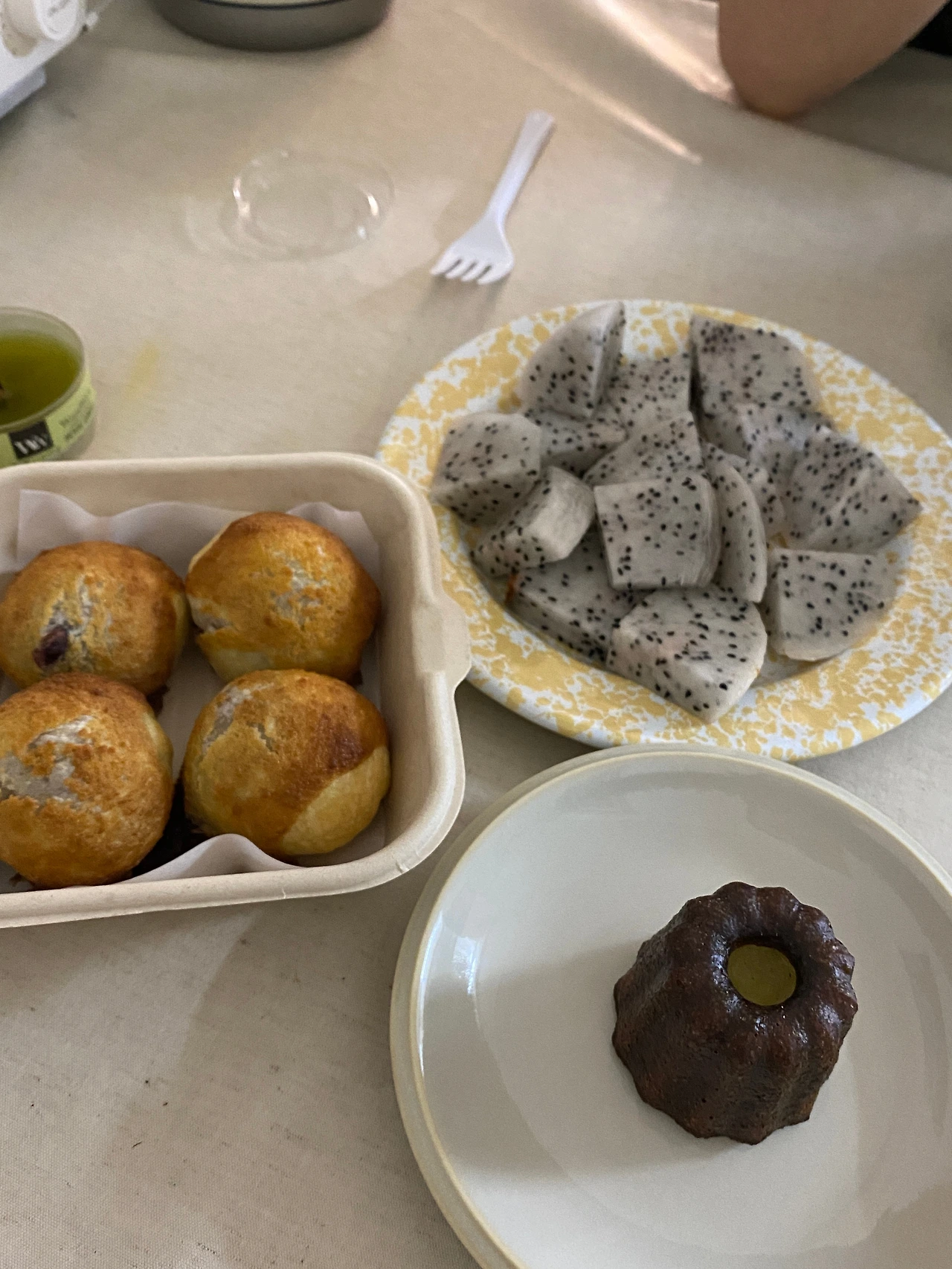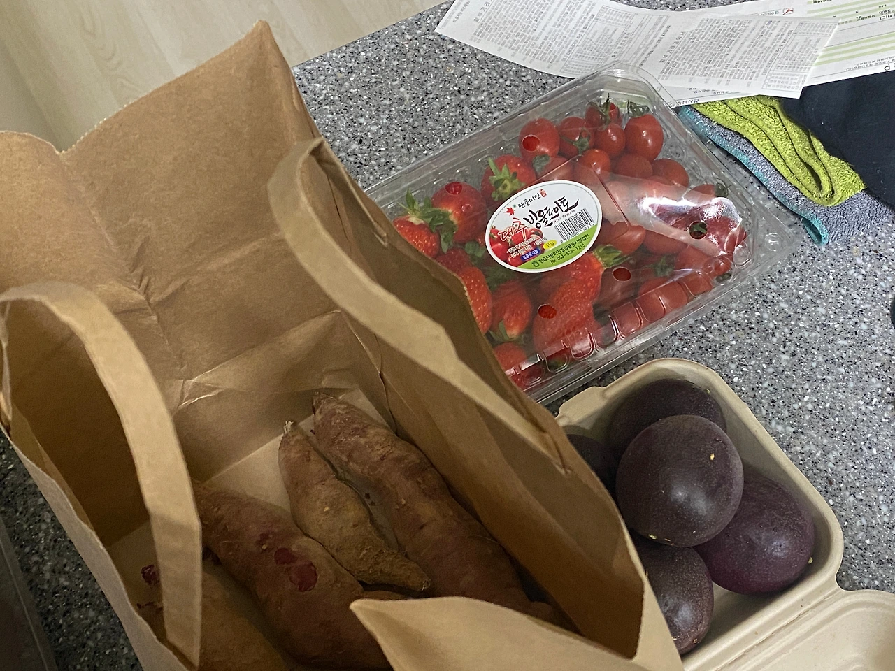 이왕 이야기가 나온 거 내 친구들 자랑 좀 하고 넘어가야지. 내 친구들은 (나처럼!?) 정이 많다. 그래서인지 무엇이든 항상 나누어주려고 하는 고집이 있다. 인터넷으로 주문한 ‘빵지 순례’ 빵들을 종류별로 나누어준다든지. 대형마트에서 대량으로 구매한 연어롤을 다음날 점심으로 먹으라고 나누어준다든지. 내가 통팥을 좋아한다는 점을 기억했다가 강원도 여행에서 사 온 냉동 찐빵을 건네기도 한다. 또 부모님이 계신 본가에서 택배 선물을 받는 날엔 더더욱 빈손으로 돌려보내는 일이 없다. 복숭아나 블루베리, 자두와 같은 새콤달콤한 여름 과일뿐만 아니라, 가지, 부추, 오이와 같은 식재료를 선물 받은 적도 많다. 그래서 서로 부모님께도 더욱 감사한 마음이고, 나 역시 나눔의 미학을 더욱 진심 담아 몸소 체험하고 있는 것 같다. 우리 부모님께서는 어렸을 때부터 친구네 집에 놀러 갈 때는 빈손 대신 마음을 꼭 표현하라고 알려주셨었다. 그래서인지 친구네 집에 놀러 갈 때마다 부담을 느끼는 것은 아니지만 뭐라도 챙겨가는 습관이 길러진 것 같다. 게다가 나 역시 친구들에게 항상 많은 선물을 받고 있으니, 친구네 집으로 놀러 가기 전에 항상 냉장고를 뒤지거나 동네 카페에 들러 맛있는 음료를 포장하게 되는 것 같다.