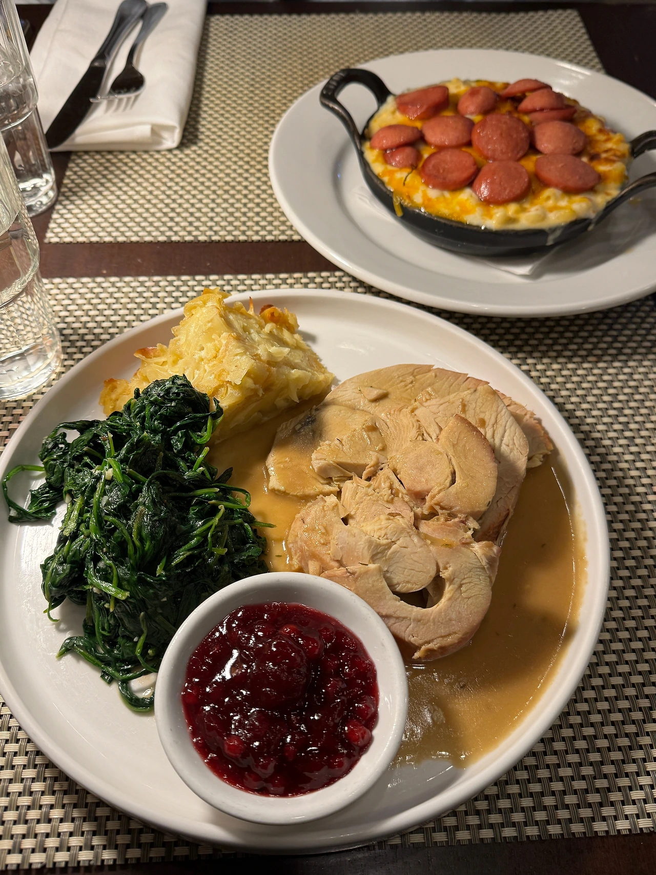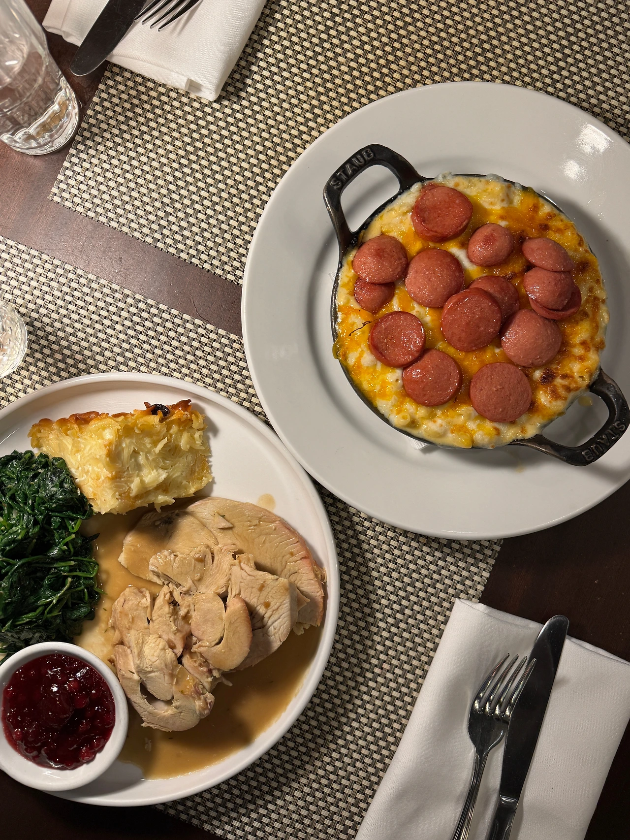 땡스기빙의 가장 전통적이고 관습적인 메뉴가 모두 담긴 접시가 아닐까 싶다. 함께 곁들인 버터 가득 맥앤치즈도 미국의 명절을 기념하기에 제격인 메뉴였다.