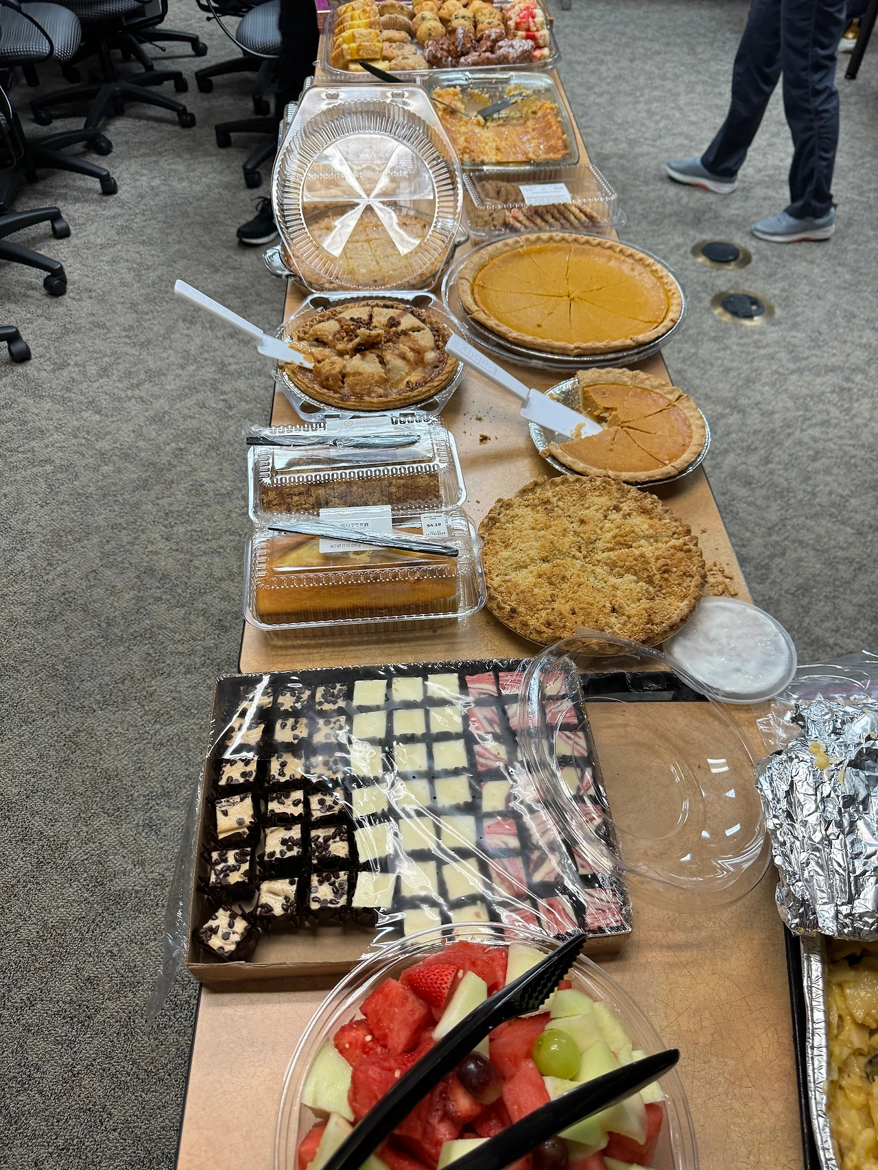 사실 이번이 미국에서 겪는 첫 번째 땡스기빙은 아니다. 2년 전 플로리다 게인스빌에서 교환 학기를 보내던 중 학과 "팟럭 (Potluck)"을 통해 추수감사절의 따뜻함과 정겨움을 느낀 적이 있다. "팟럭"은 각자 준비한 (직접 요리하든 구매했든 크게 상관없지만 여력이 닿으면 요리실력을 뽐내는 친구들도 많았다) 음식을 가져와서 함께 나누어 먹는 모임을 뜻하는 미국식 문화다. 워낙 손이 큰 미국 친구들은 전체 학과 사람들을 다 동원해도 먹어치우기 어려운 만큼의 음식들을 챙겨 왔고 덕분에 당일 저녁까지 (또는 경우에 따라 익일 점심 도시락까지) 걱정 없이 땡스기빙 만찬을 즐길 수 있었다.