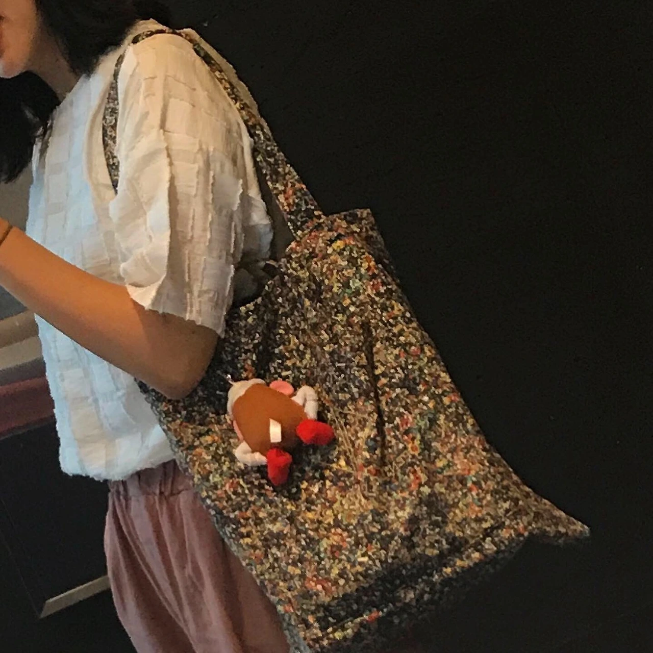 물론 에코백이라고 가리지 않고 다 좋아하는 것은 아니다. 필자도 한 고집, 한 취향 타는 성향이라 스스로 어떤 스타일을 좋아하는지에 대해서는 확실한 기준이 몇 가지 있다. 먼저 가방 끈은 길어야 한다. '에코백'이라 함은 손으로 들지 않고 어깨 사이에 끼워서 들고 다니는 맛이 확실한 종류의 가방인데 끈이 짧다면 곤란하다. 확실하게 묘사하기 좀 어려울 수 있지만 감으로 설명하자면 필자가 특정 에코백을 멨을 때 그 가방이 대롱거리는 길이가 '때똑'하다면 그것은 불호다. 좀 '스웨그 (swag)'있는 대롱 거림(?)이 좋다. 두 번째로는 가방 안에 작은 수납형 주머니가 있어야 한다. 별거 아닌 것 같아도 이 주머니가 정말 큰 차이를 만든다. 직사각형 모양의 천 가방 속에 소지품을 집어넣고 다니는데 작은 주머니가 없다면 핸드폰이나 카드지갑, 또는 립스틱이나 열쇠와 같은 작은 소지품을 찾고 사용하기가 너무 불편해진다. 이상적으로는 가방 안쪽 위 끈 부분 사이에, 또는 바깥에 지퍼가 달린 복주머니형 수납공간이 하나 더 있으면 최고다. (물론 디자인이 너무 예쁘면 어쩔 수 없을 때도 있었지만 수납공간은 실용성까지 놓치지 않고 승부하겠다는 에코백의 포부에 필수인 디테일이다.)