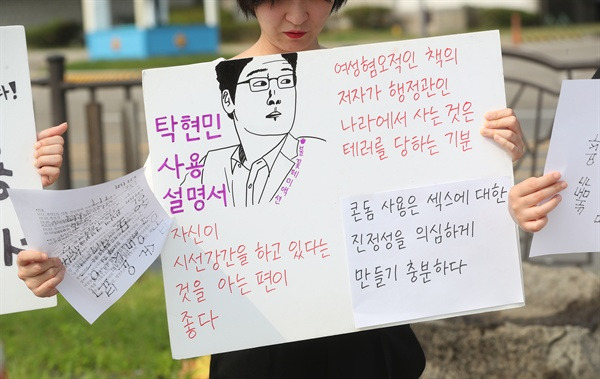 "더 이상 부끄러움의 몫은 국민의 것이 아니기에 먼저 문재인 대통령에게 요구한다. 성평등 없는 민주주의는 민주주의가 아니다. 후보시절부터 성평등 대통령을 외쳤던 것이 국민에게 환심을 사려는 일시적인 구호가 아니었다면 부디 탁현민 행정관을 보듬고 가기를 포기하고, 책임정치를 금과옥조로 삼아 보듬고 가시길 부탁드린다. 그리고 청와대 탁현민 행정관에게도 요구한다. 더 이상 묵언수행을 포기하고, 청와대 밖으로 걸어 나와서 자유로워지길 바란다."