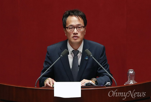박주민 더불어민주당 의원이 작년 9월 20일 오후 서울 여의도 국회 본회의장에서 열린 정치 분야 대정부질문에서 황교안 총리에게 정부가 세월호특조위 조사활동을 강제 종료하고 있다고 지적했다. ⓒ 유성호