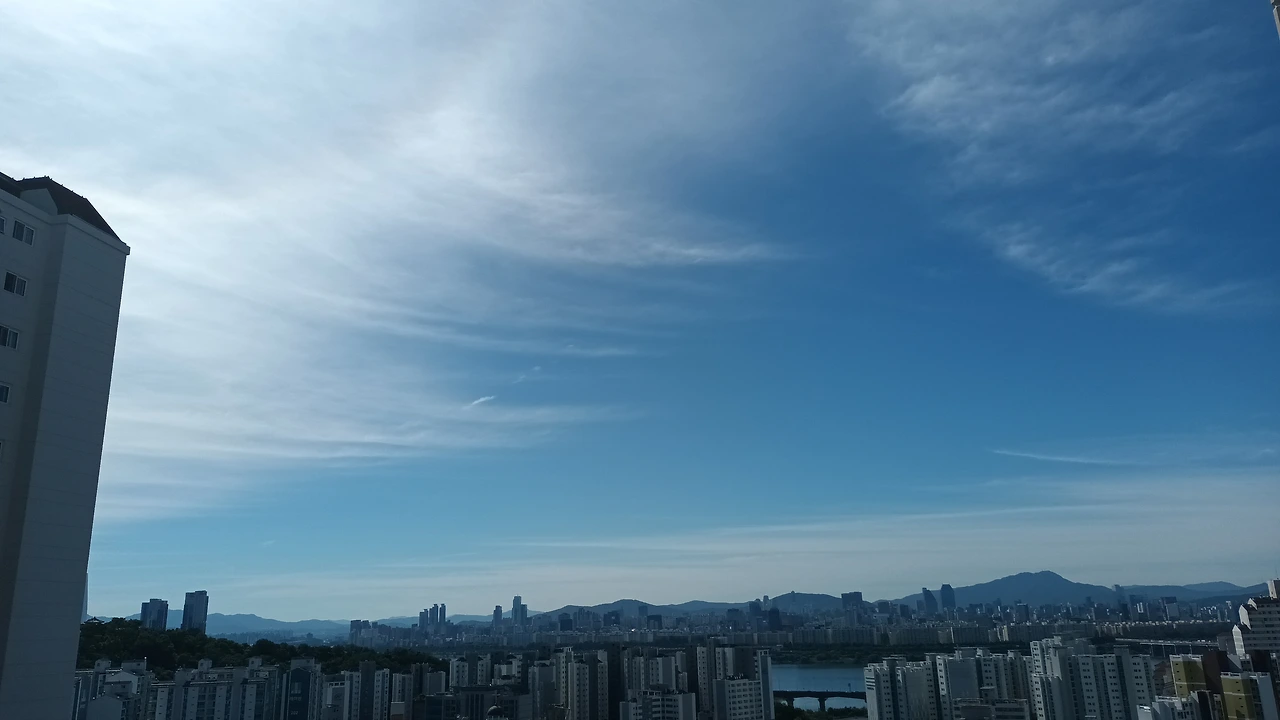 문득, "가을에 태어난 아름다운 당신은"이란 노래를 저절로 읊조리게 만드는 하늘. 잠시 후 생각해보니 그 곡이 배수지님도 리메이크했던 "눈처럼 깨끗한 나만의 당신"으로 이어지는 <겨울아이>였다는 반전.