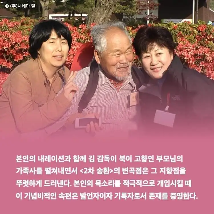 <2차 송환> 관련 제 글을 배급사 시네마달이 카드뉴스로 만들어 주셨네요. 김동원 감독님과 푸른 영상의 희대의 다큐멘터리 <송환>을 잇는 <2차 송환>은 올해 찾아 온 주목할 만한 다큐 중 하나로 장기 상영 중입니다. 우리 극장가에서 가을이 다큐의 계절이 된 지 꽤 된 거 같은데요. 극장에서든 2차 배급에서든 많은 분들이 보셨으면 하는 '대작' 다큐입니다.