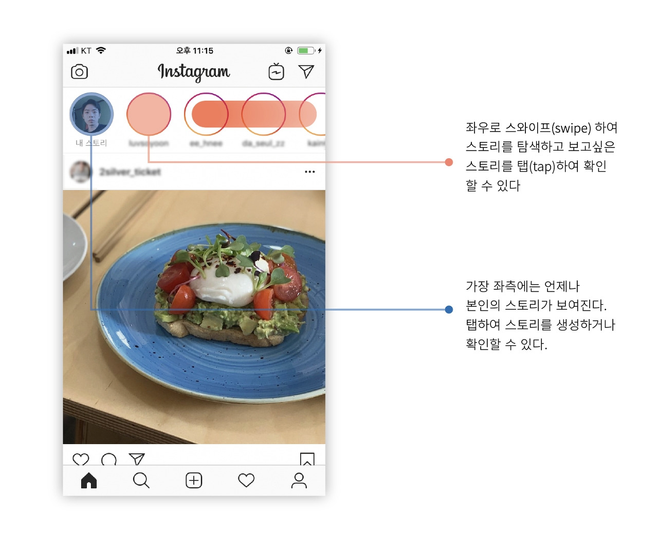 최근에 인스타 활동을 활발하게 하고 있다. 예전엔 사진을 대충 찍었다면 이젠 사진 한 장을 찍을 때도 정성 한가득 담아 찍고 있다. 사진의 각도, 빛의 방향, 보정 등 신경 써야 할 부분이 많다. 인스타그램을 하다 보니 앱 UI에 대한 분석도 자연스럽게 하게 되는데, 역시 잘 나가는 앱은 UX/UI도 탄탄하게 잘 돼있다. 그중에서도 오늘은 필자가 가장 애용하는, 한편으론 교활한(?) 인스타그램 스토리에 대해 이야기하고자 한다.