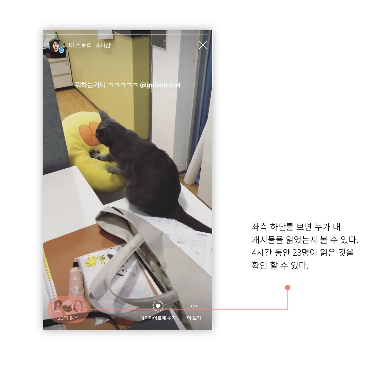 누군가의 게시물이 궁금해서 봤다면 그 게시물을 올린 사람도 어느 누가 내 컨텐츠를 봤는지 궁금해할 것이다 (브런치 작가들이 자주 통계를 들락날락거리는 것처럼). 나에게 관심을 갖고 있는 사람이 누군지 궁금해하는 건 인간의 본능이라 어쩔 수 없다고 생각한다. 그런데 여기서 웃긴 건 사람의 심리다. 스토리를 읽은 사람이 보이게 된 이후로 사람들이 관심 있던 사람의 게시물을 읽는 것을 망설이는 현상이 일어난 것이다. 난 너에게 관심이 있지만 네가 그 사실을 몰랐으면 좋겠어! 뭐 대충 이런 심리라고 볼 수 있겠다.