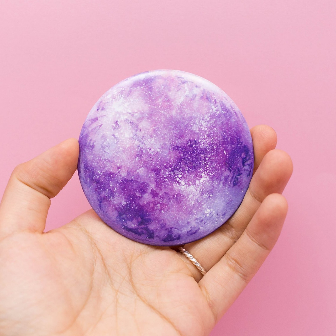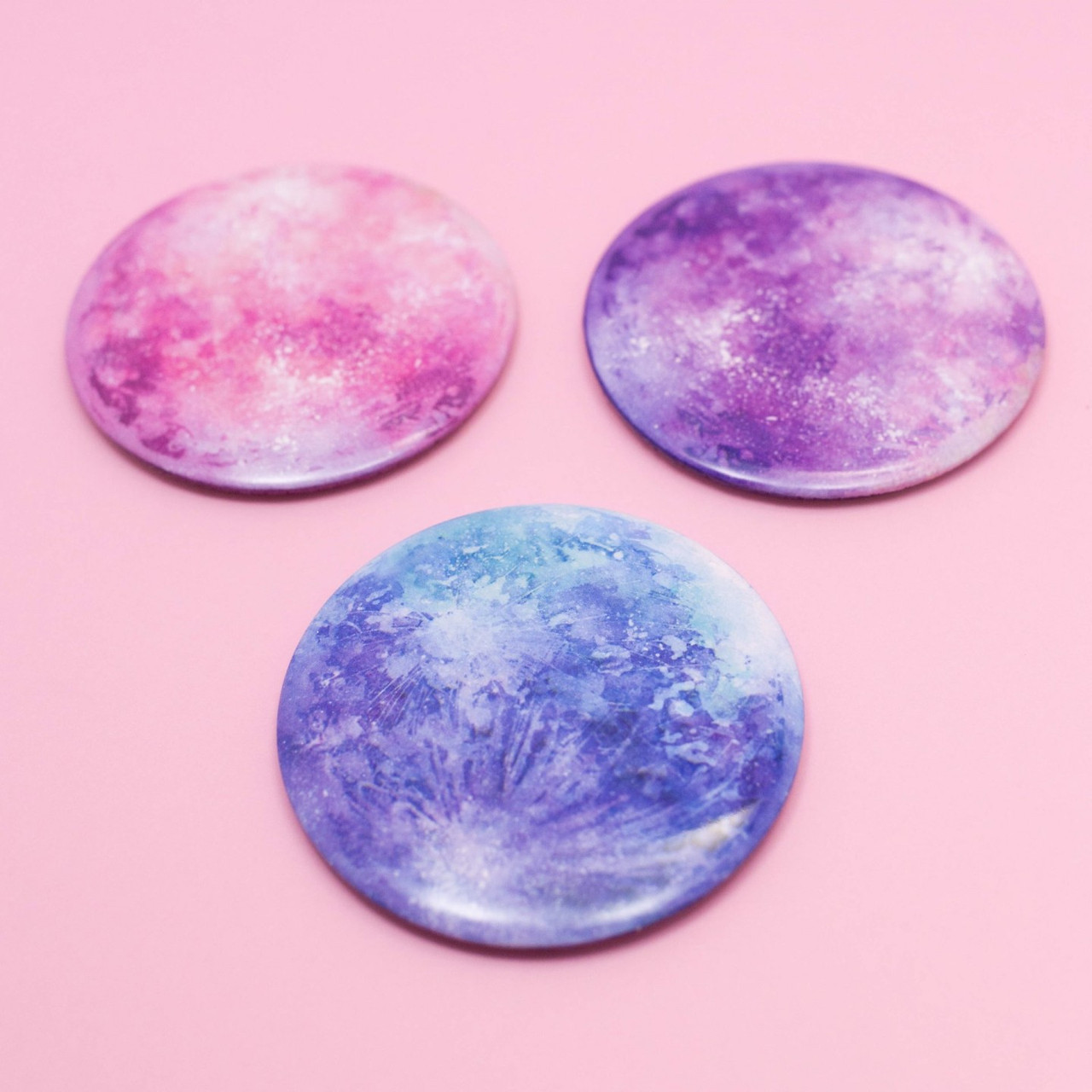 마침 내가 예전에 그려놨던 그림 중 몽환적인 느낌을 담은 수채화 달 일러스트가 있었다. 아, 이걸로 손거울을 만들어봐도 되겠는데? 그렇게 만든 작품이 위와 같다. 일러스트 페어에서도 꽤 인기가 있었다. 사람들이 내가 그린 달 손거울의 색감이 예쁘다고 하면서 지나가는 거다.