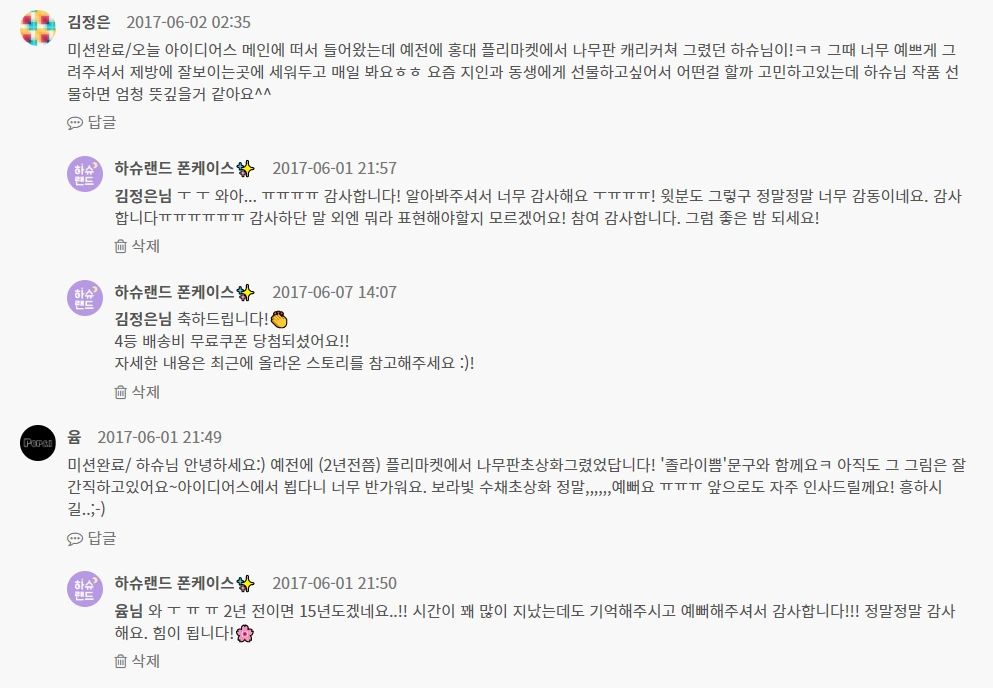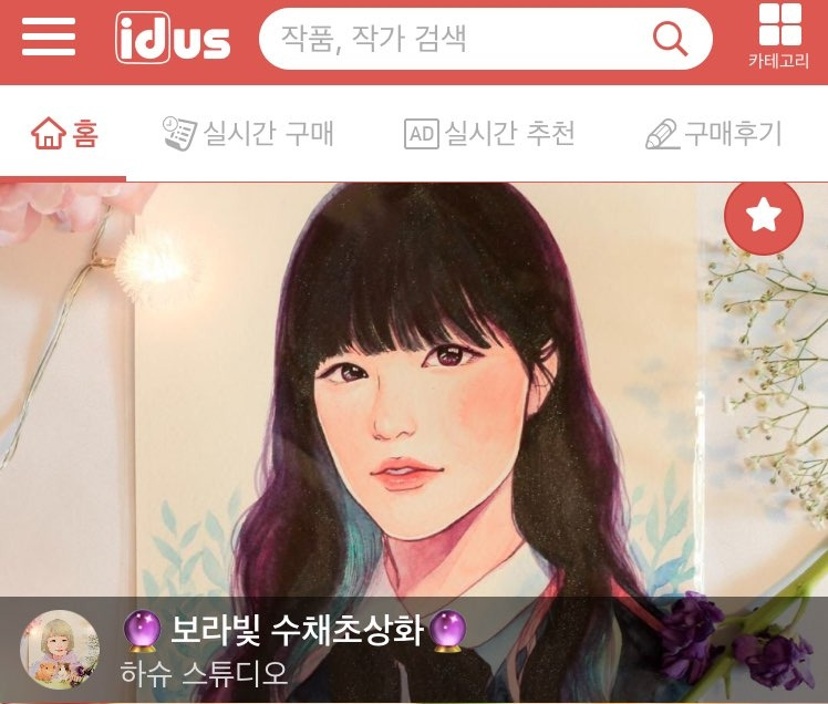 아이디어스 메인에 뜬 날, 초상화 주문이 꽤 들어왔다. 이틀 정도 주문이 쌓였고, 열심히 그렸다. 나중에 생각해보니 이 때 메인에 뜬 게 홍보도 꽤 된 모양이었다. 조회수가 올랐고, 사람들이 내 작품에 좋아요(★)를 누르기 시작했다. 메인 노출이 효과가 있었다. 당장 구매를 하지 않더라도 내 샵을 즐겨찾기(♥) 하는 사람들이 생겼다. 내 온라인샵, 하슈랜드(구 하슈스튜디오)도 인지도를 쌓는 첫 시작이었던 것 같다.