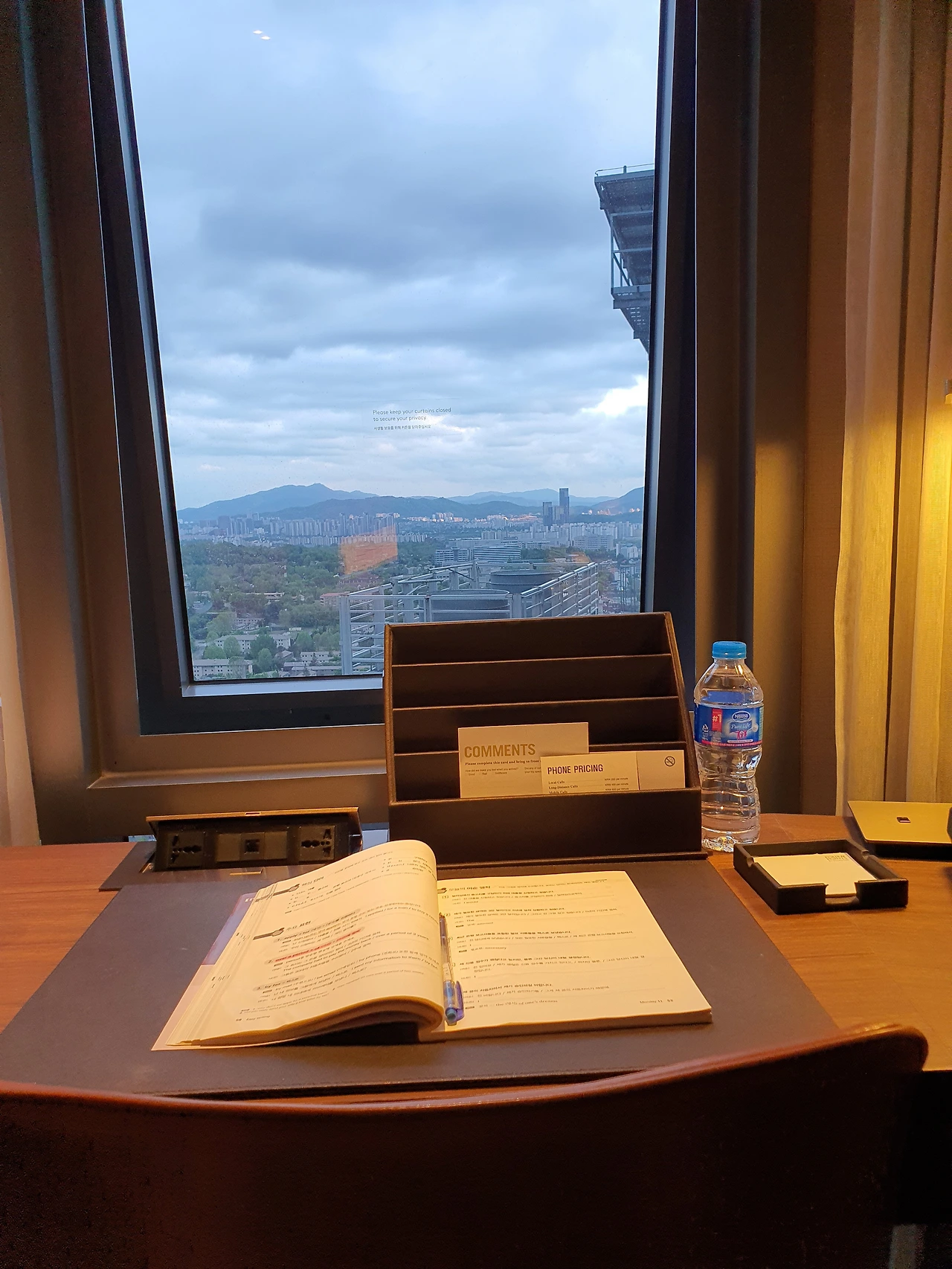 남편이 서울에서 볼일을 보는 동안, 나는 창문이 보이는 책상에 앉아서 책을 읽고, 영어 공부를 하기 시작했다. 다락방 같은 창문 밖으로 보이는 도시가 아름다웠다. 도시가 주는 에너지에 취해서 쉬기보다는 발전적인 일이 하고 싶어 졌다. 어두워질 때까지 계속 책상에 앉아있었다.